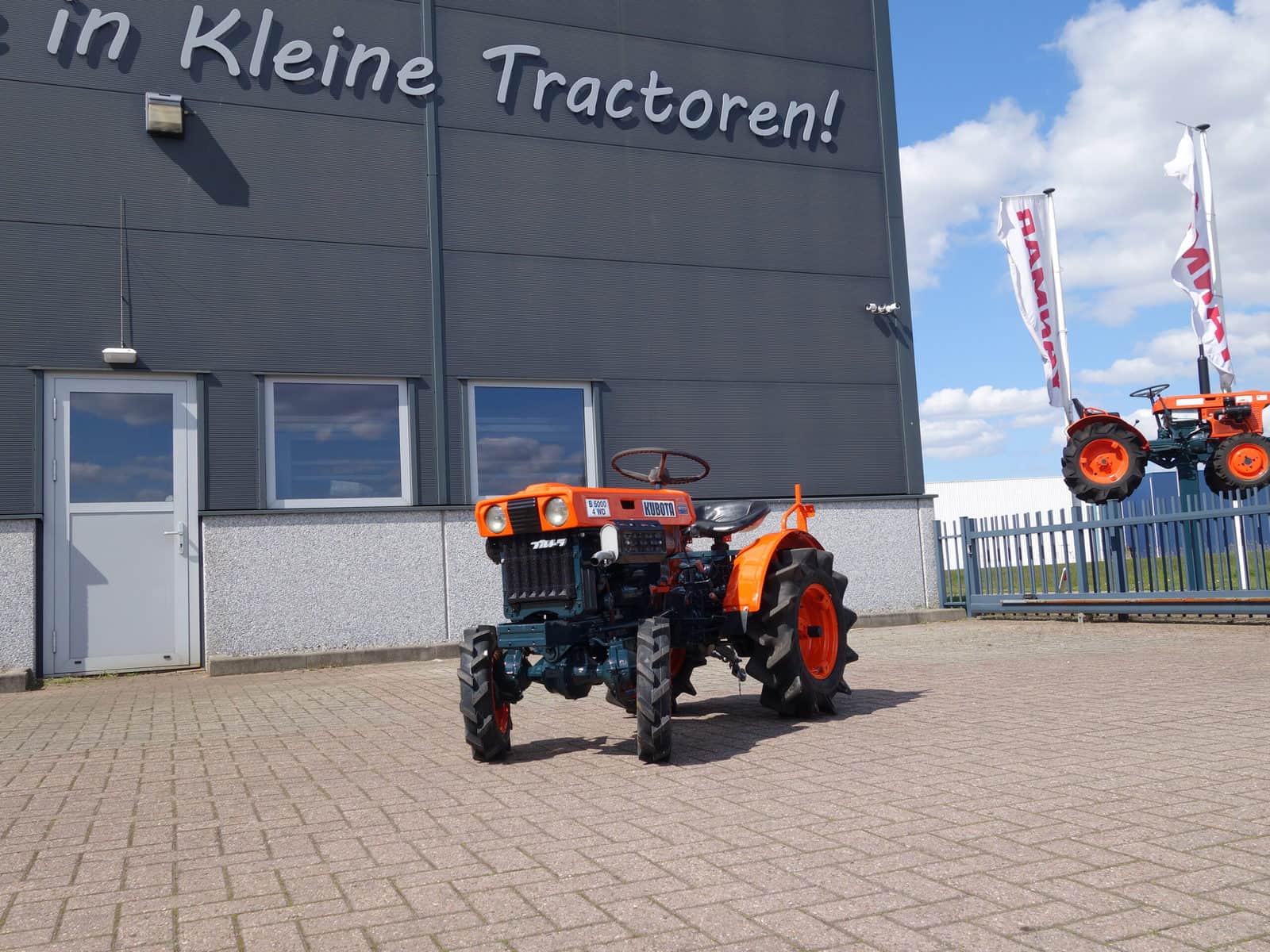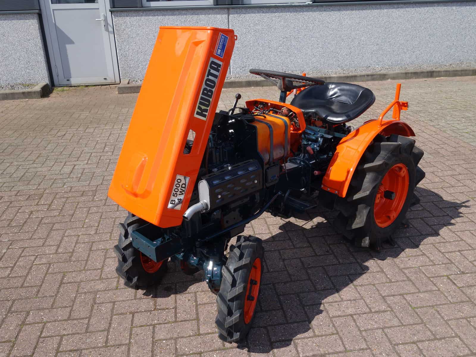 Als het nog net iets smaller moet zijn; De Kubota B5000 4wd meet buitenwerks maar 81 cm !! Door de zeer compacte bouw zeer geschikt om toch in de kleinste hoekjes te kunnen komen. 4 x 4 uitvoering (vier wiel aangedreven) Compleet met driepuntshef en topstang. Hoge en lage gearing, Sper, Sterke 12 Pk Dieselmotor. Het geheel is zeer netjes en is voorzien van algehele servicebeurt.