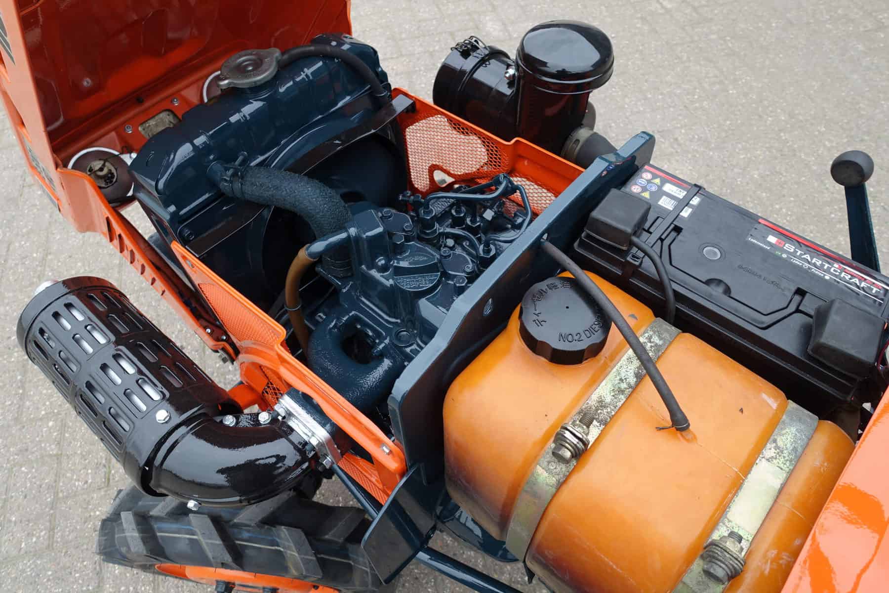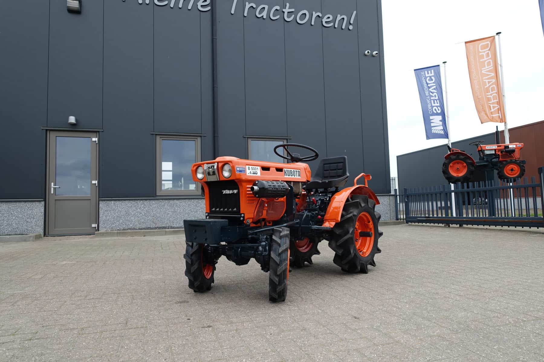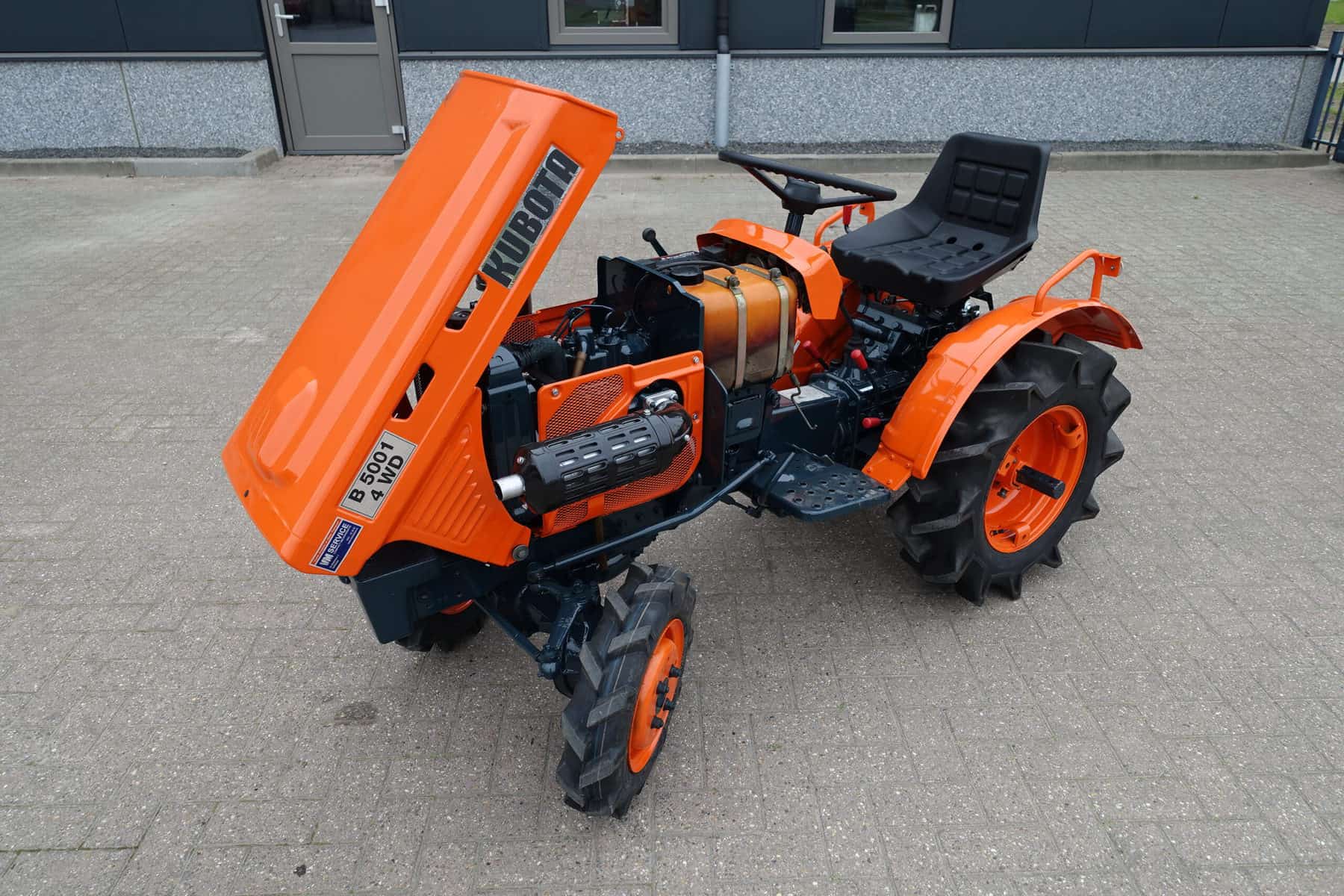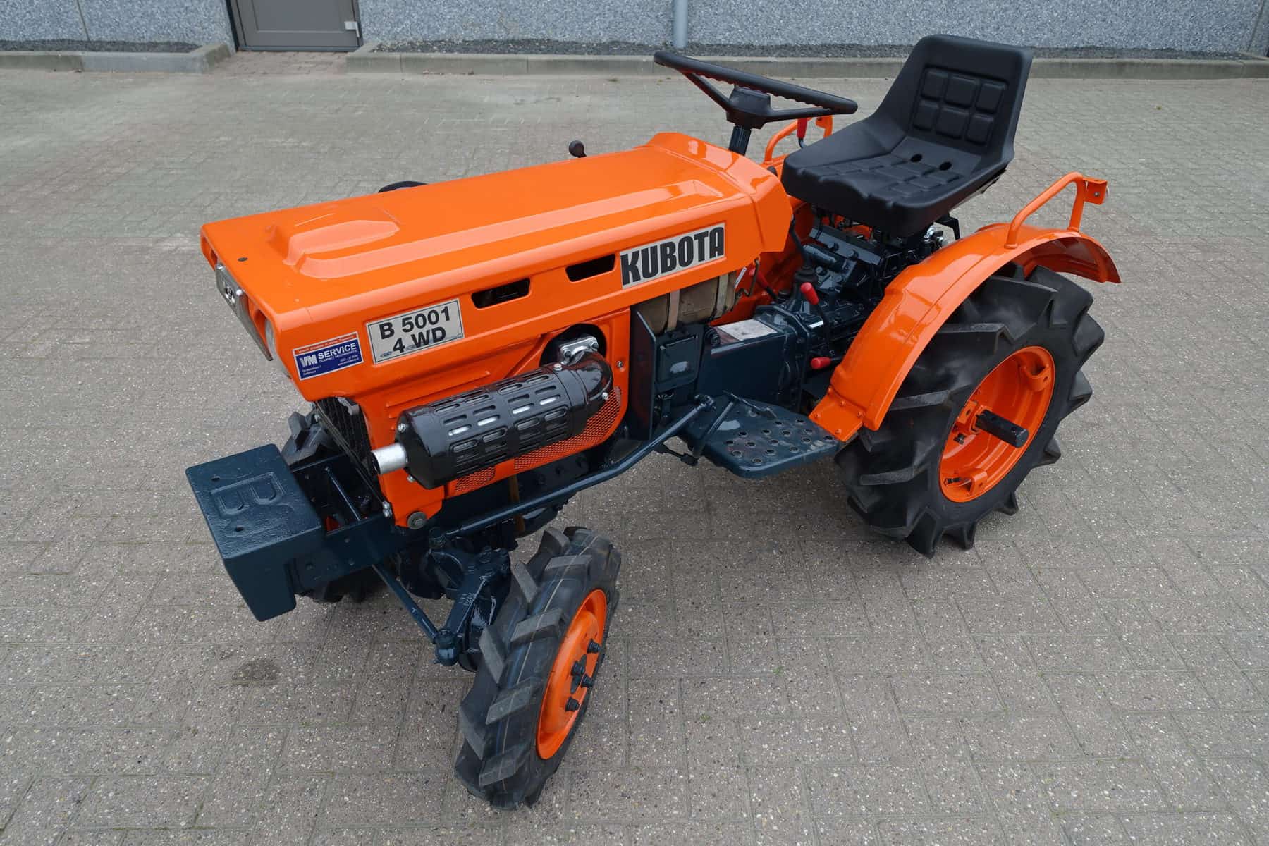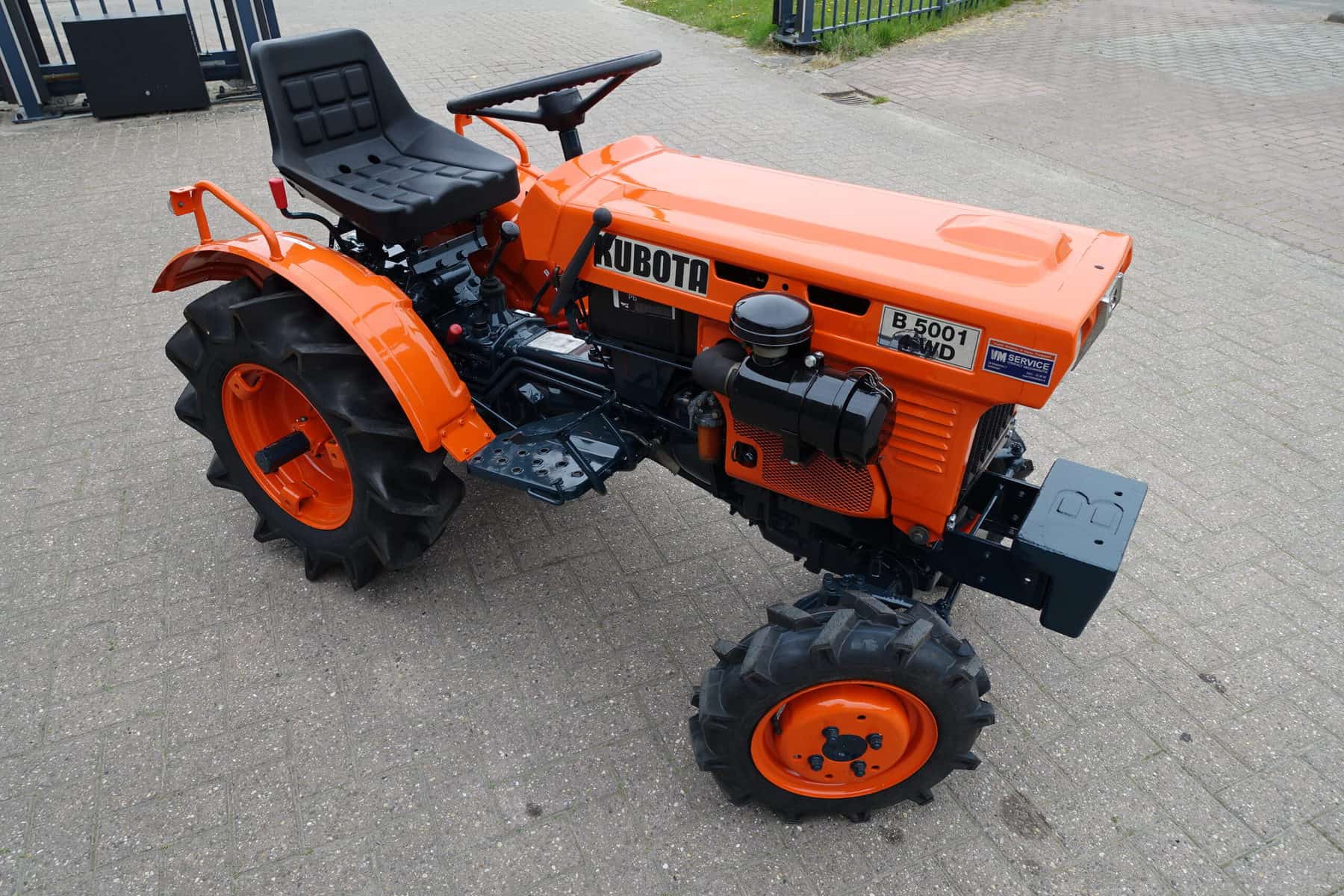 Als het nog net iets smaller moet zijn; De Kubota B5001 meet buitenwerks maar 81 cm !! Door de zeer compacte bouw zeer geschikt om toch in de kleinste hoekjes te kunnen komen. 4 x 4 uitvoering (vier wiel aangedreven) Compleet met driepuntshef en topstang. Hoge en lage gearing, Sper, Sterke 12 Pk Dieselmotor. Het geheel is zeer netjes en is voorzien van algehele servicebeurt.
