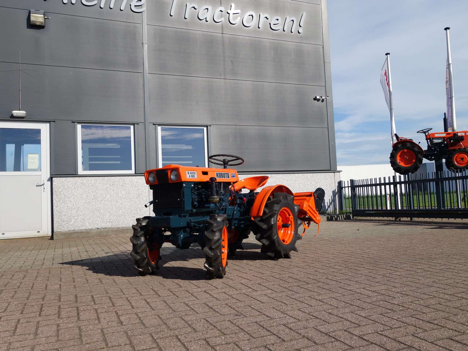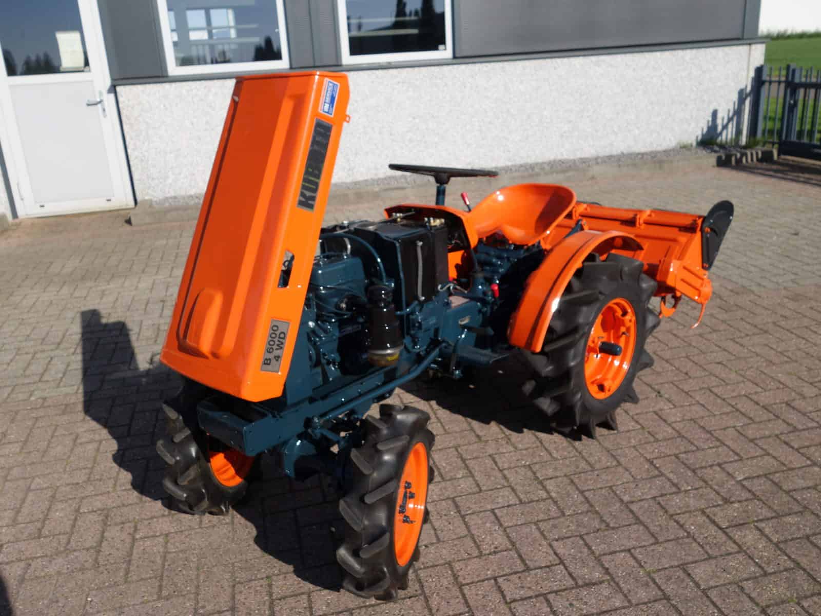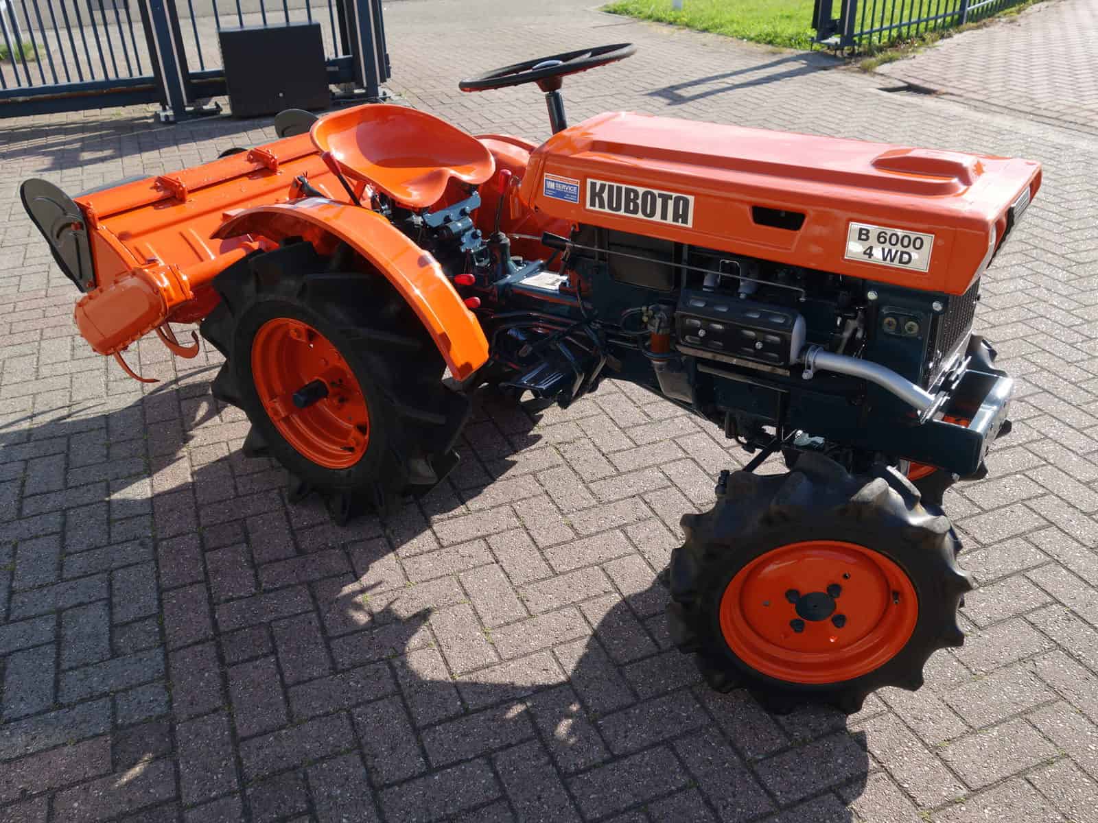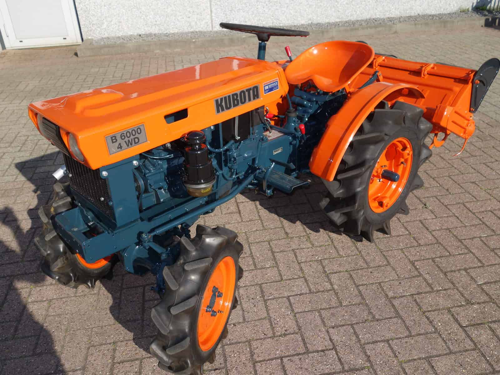 Kubota B6000 4wd compacttrekker. Geringe afmetingen, Grote prestaties, dat is wat past bij deze allround inzetbare minitrekker. Krachtige Dieselmotor, 4wd in- en uitschakelbaar, Hoge- en Lage gearing, Sper, Aftakas, enz. Compleet met 85cm brede grondfrees.