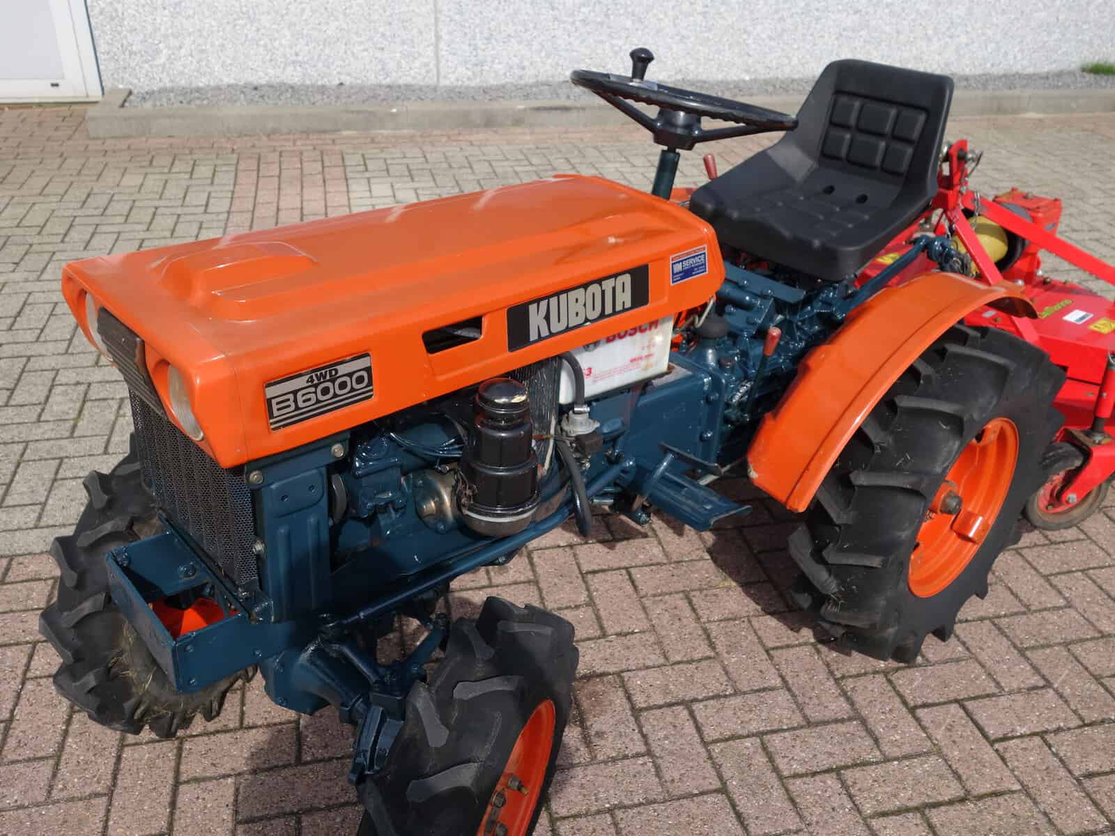 Kubota B6000 4wd compacttrekker. Geringe afmetingen, Grote prestaties, dat is wat past bij deze allround inzetbare minitrekker. Krachtige Dieselmotor, 4wd in- en uitschakelbaar, Complete driepuntshef. Hoge- en Lage gearing, Sper, Aftakas, enz. Trekker is voorzien van algehele servicebeurt en staat klaar voor gebruik.