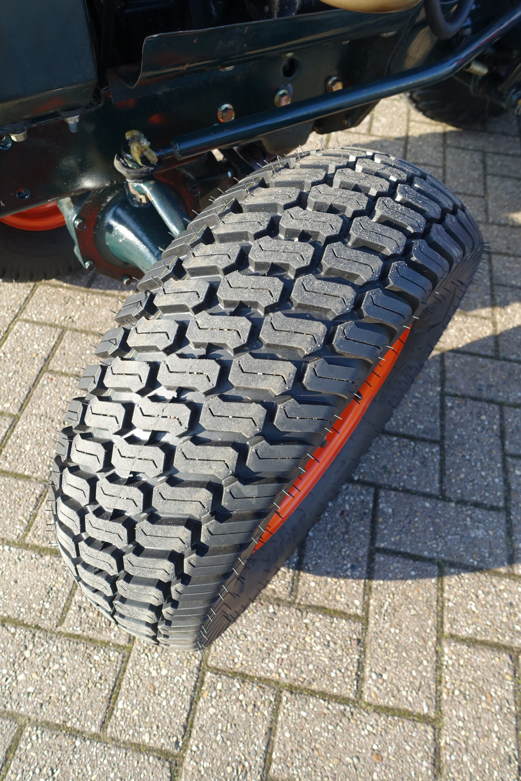 LET OP; Nagenoeg nieuwe set brede gazonbanden!!