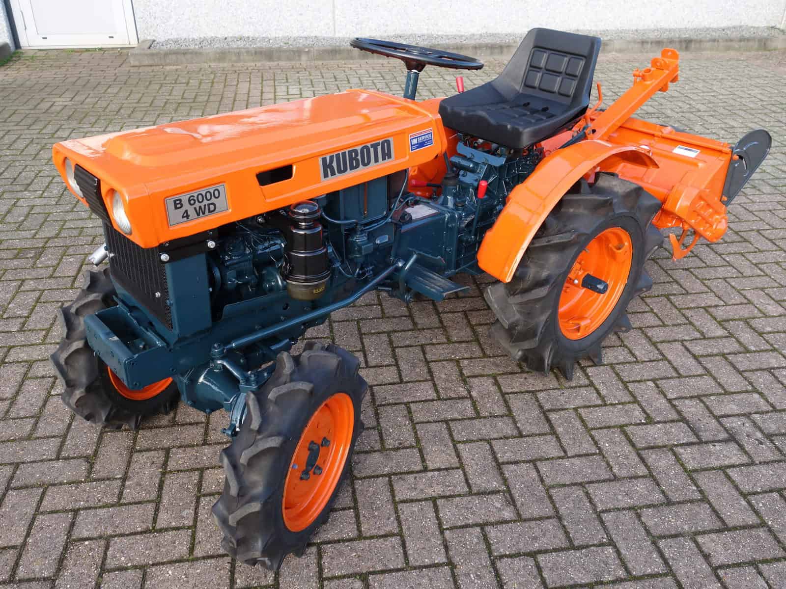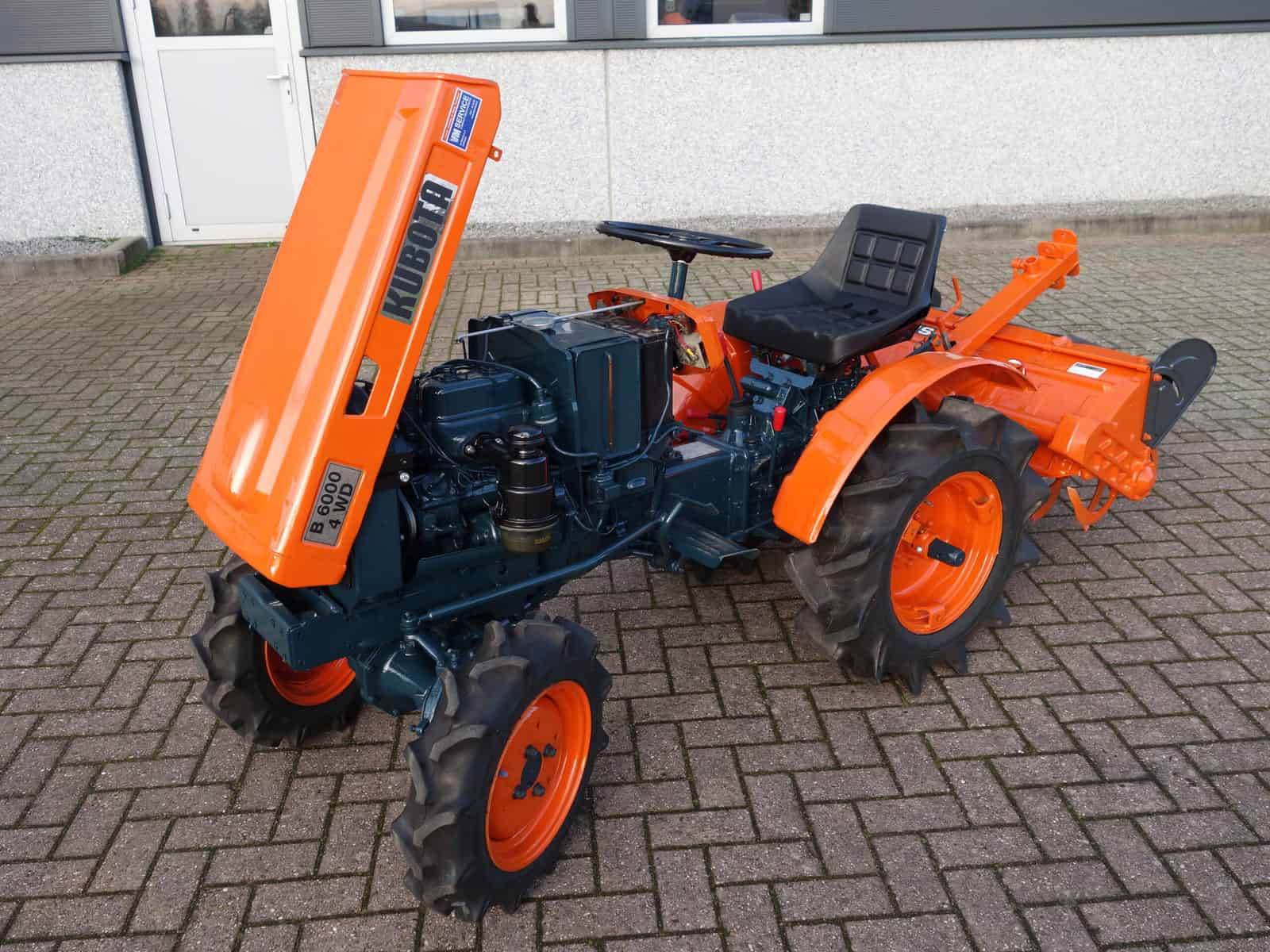 Kubota B6000 4wd compacttrekker. Geringe afmetingen, Grote prestaties, dat is wat past bij deze allround inzetbare minitrekker. Krachtige Dieselmotor, 4wd in- en uitschakelbaar, Hoge- en Lage gearing, Sper, Aftakas, enz. Compleet met 85cm brede grondfrees.
