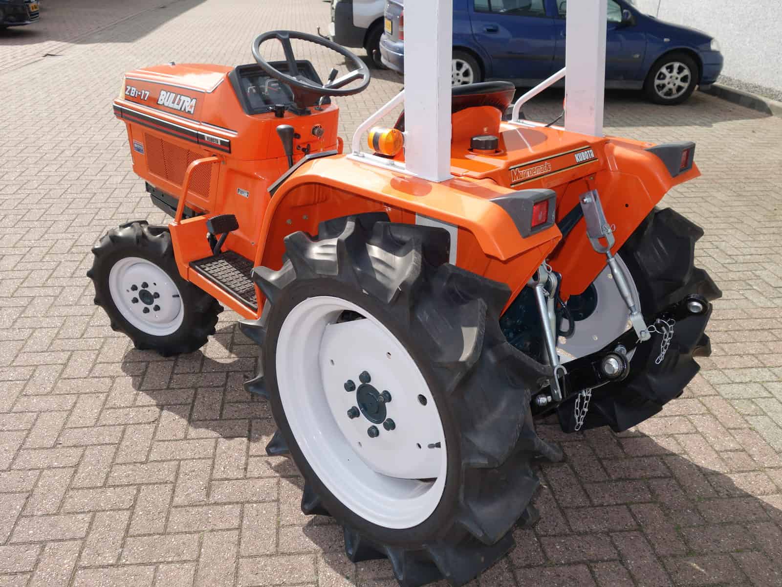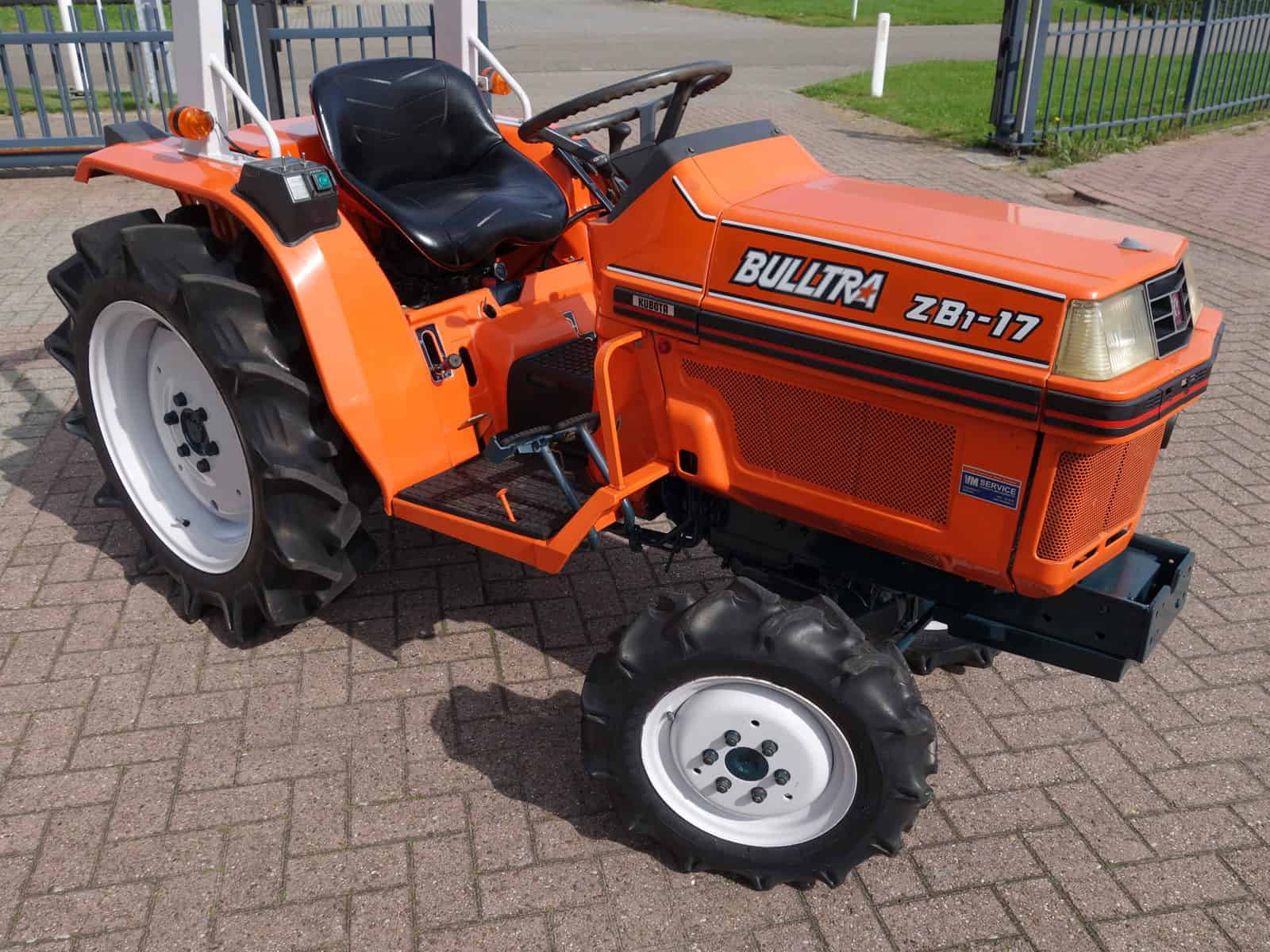De Bulltra B1-17 4wd van Kubota heeft een aantal grote pluspunten, te weten; Krachtige 21 Pk 3 cilinder dieselmotor, Grote wielen voor een grote tractie en toch maar 110cm smal!! In combinatie met de superkruipversnelling een ideale trekker om te spitten, frezen, planten, etc. Externe hydraulische aansluitingen (dubbelwerkend hydraulisch ventiel met twee aansluitingen), Een hele lijst van zaken welke deze trekker maken tot een allround inzetbare compacttrekker. Degelijke bouw, beugel, hef, aftakas aan de achterzijde. Slechts 0959 draaiuren. Voorzien van algehele servicebeurt.