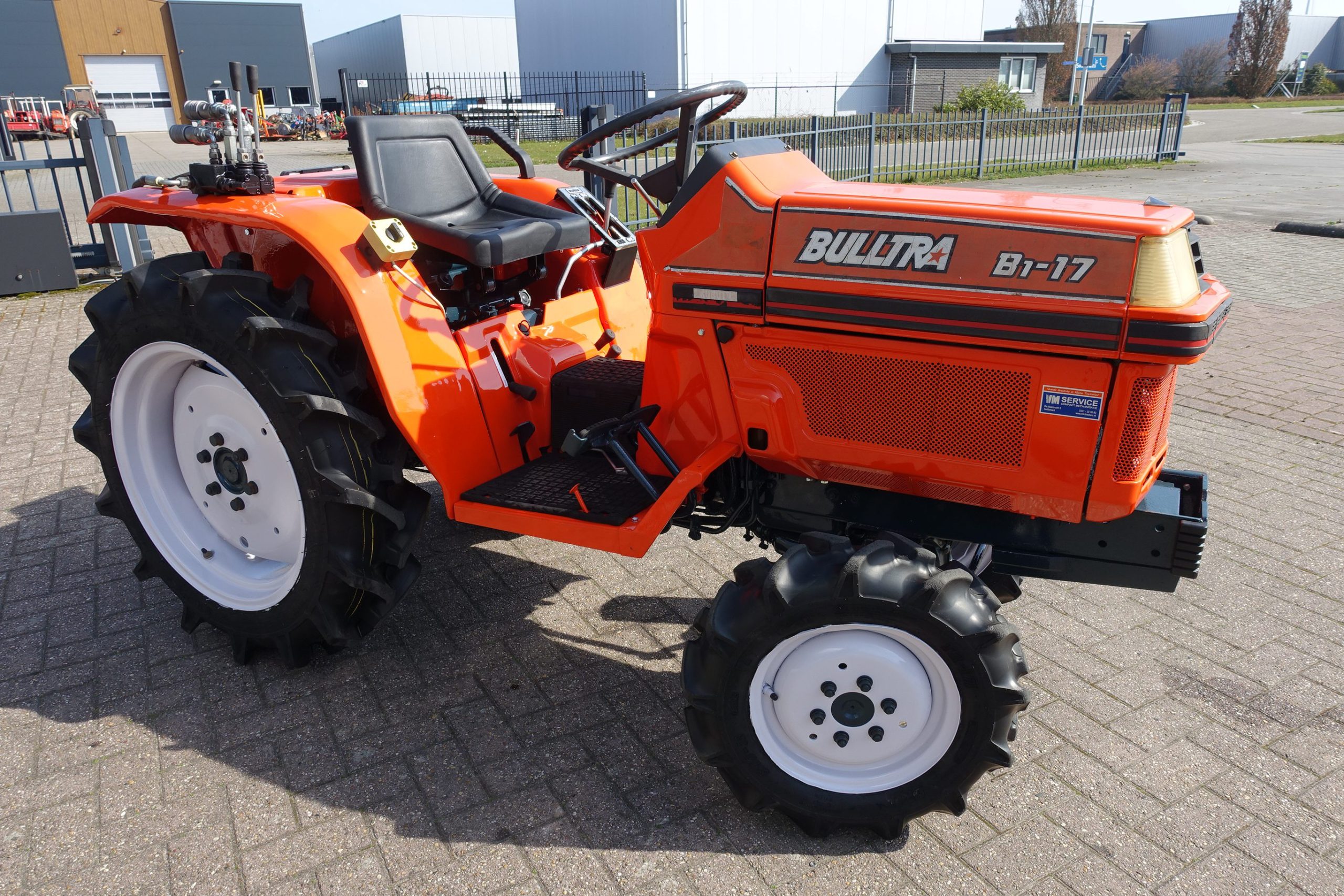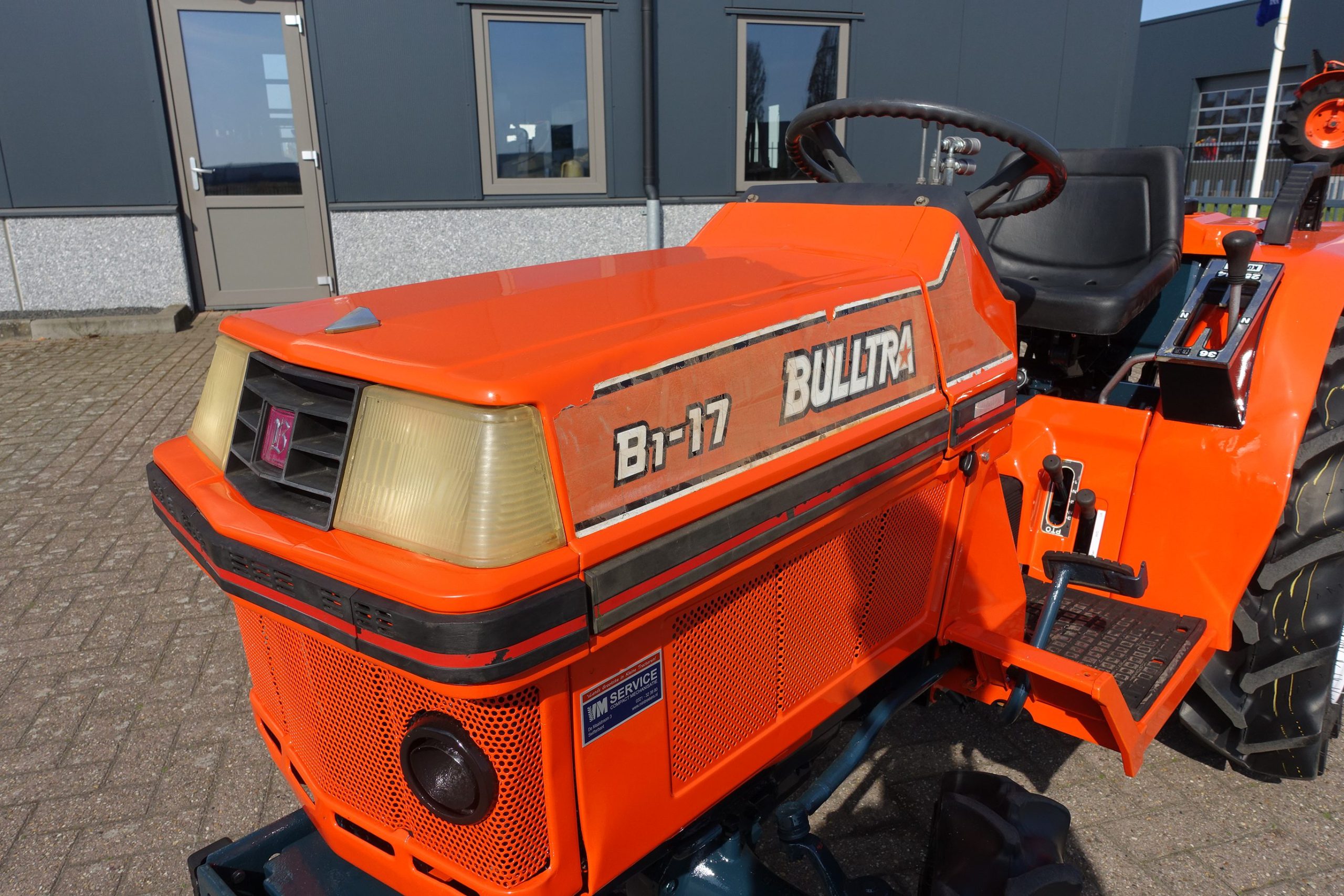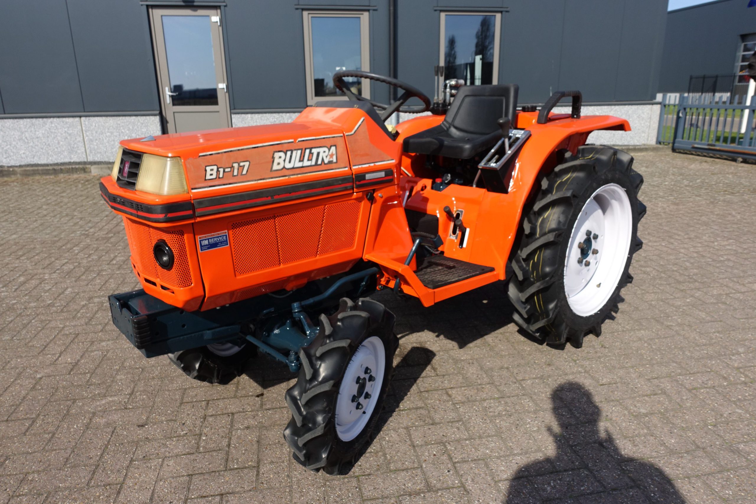 De Bulltra B1-17 4wd van Kubota heeft een aantal grote pluspunten, te weten; Krachtige 21 Pk 3 cilinder dieselmotor, Grote wielen voor een grote tractie en toch maar 115cm smal!! In combinatie met de superkruipversnelling een ideale trekker om te spitten, frezen, planten, etc. Externe hydraulische aansluitingen (dubbelwerkend hydraulisch ventiel met twee aansluitingen), Een hele lijst van zaken welke deze trekker maken tot een allround inzetbare compacttrekker. Degelijke bouw, hef, aftakas aan de achterzijde. Slechts 1037 draaiuren. Voorzien van algehele servicebeurt.
