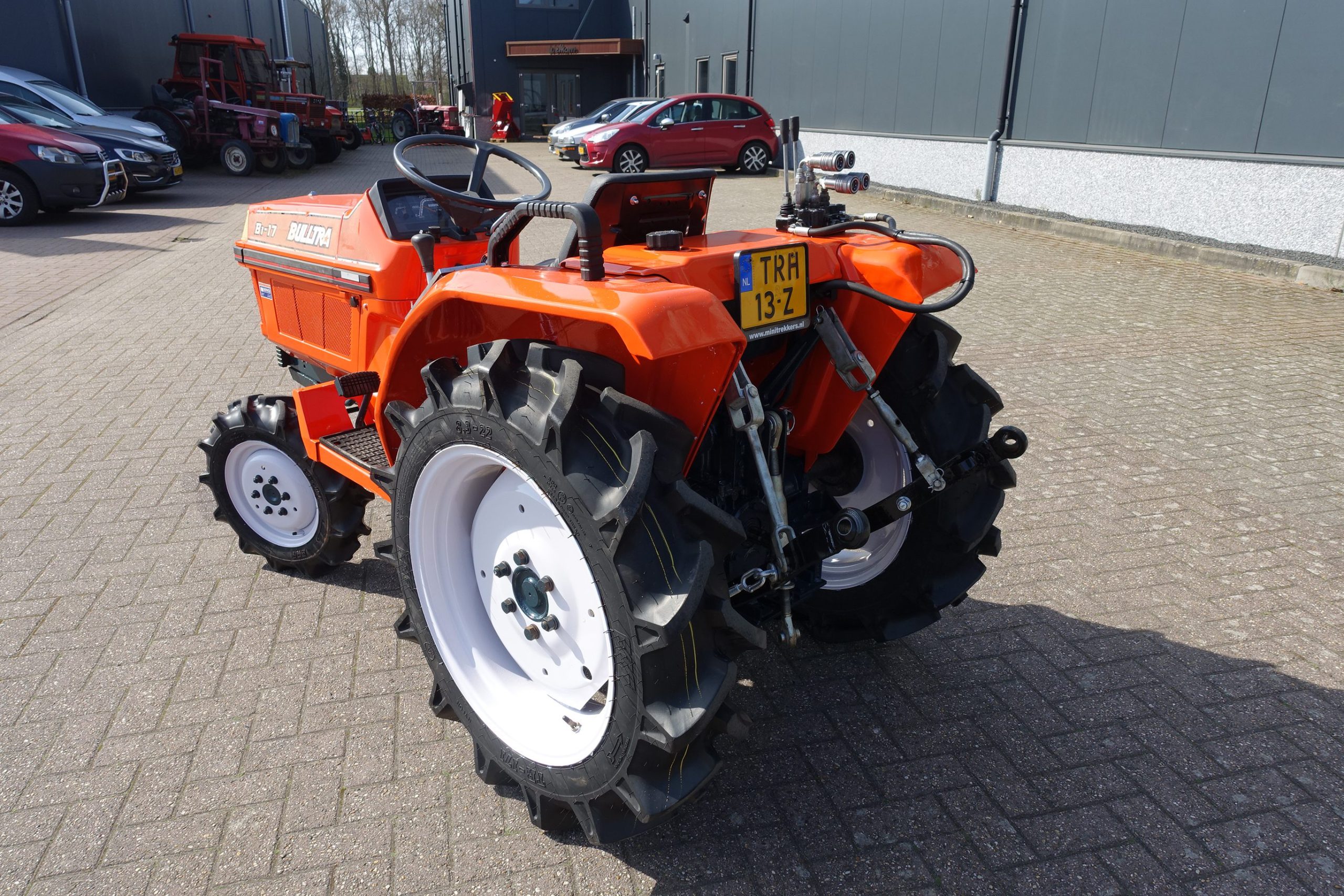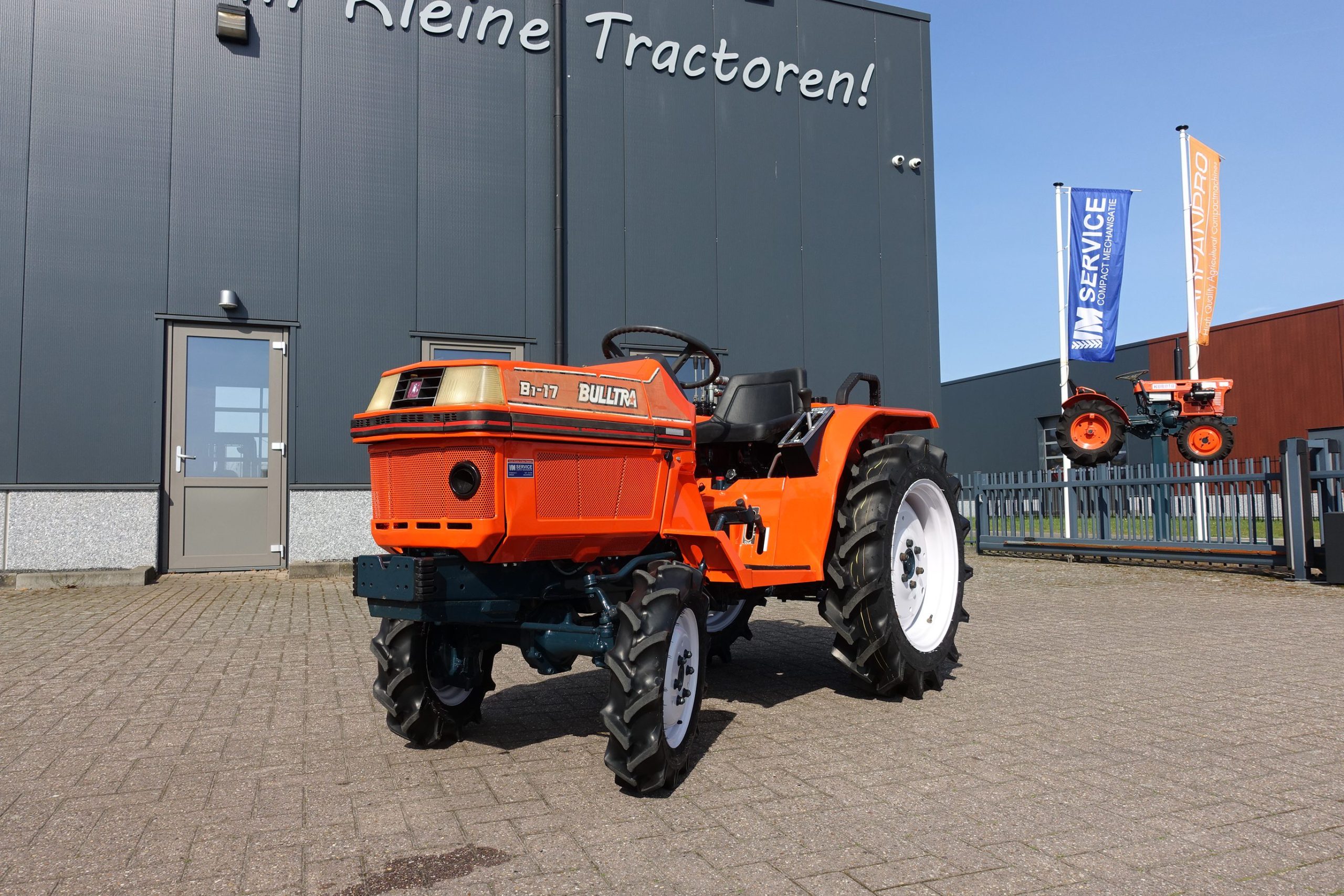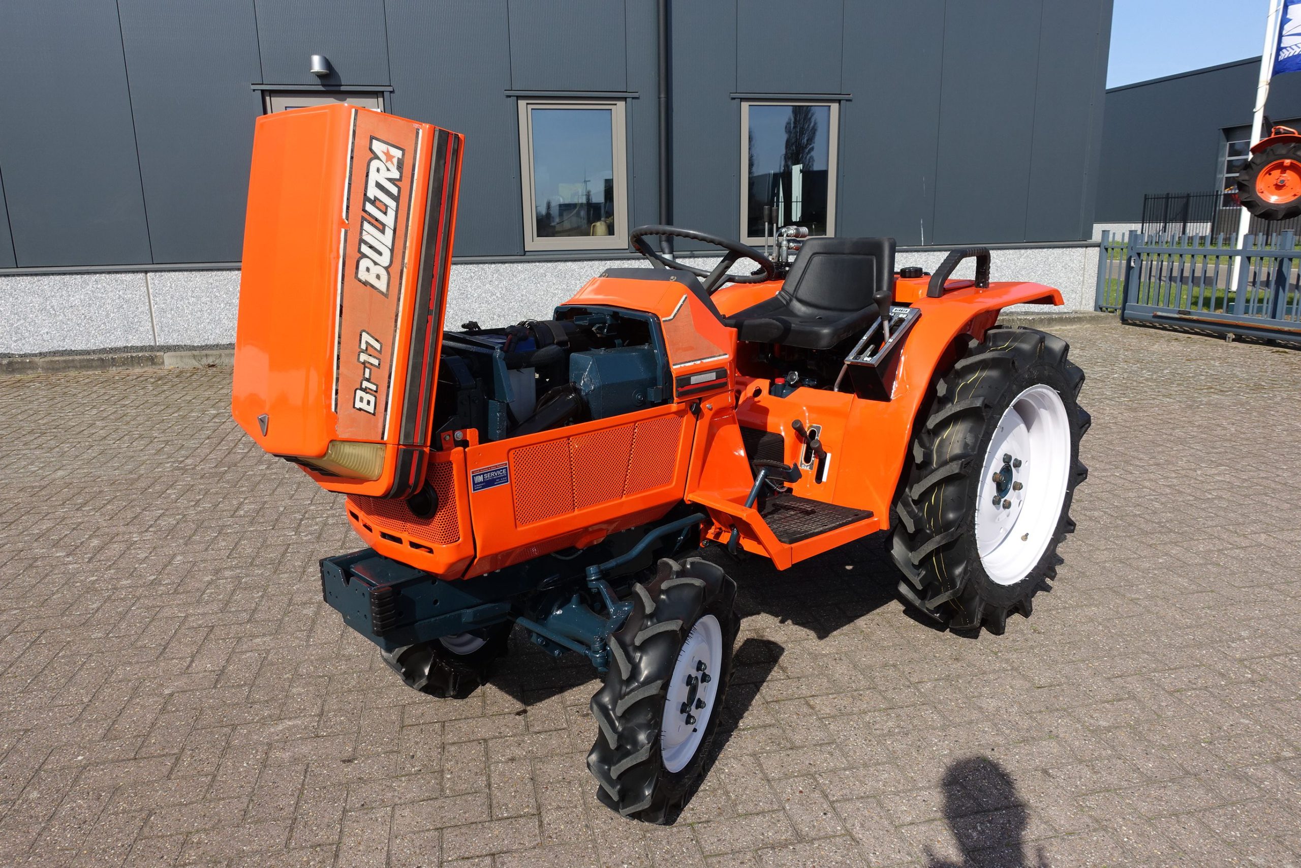 De Bulltra B1-17 4wd van Kubota heeft een aantal grote pluspunten, te weten; Krachtige 21 Pk 3 cilinder dieselmotor, Grote wielen voor een grote tractie en toch maar 115cm smal!! In combinatie met de superkruipversnelling een ideale trekker om te spitten, frezen, planten, etc. Externe hydraulische aansluitingen (dubbelwerkend hydraulisch ventiel met twee aansluitingen), Een hele lijst van zaken welke deze trekker maken tot een allround inzetbare compacttrekker. Degelijke bouw, hef, aftakas aan de achterzijde. Slechts 1037 draaiuren. Voorzien van algehele servicebeurt.