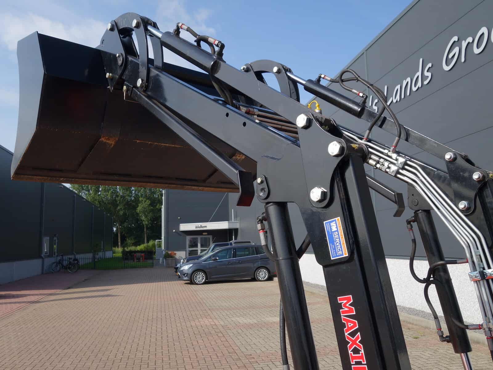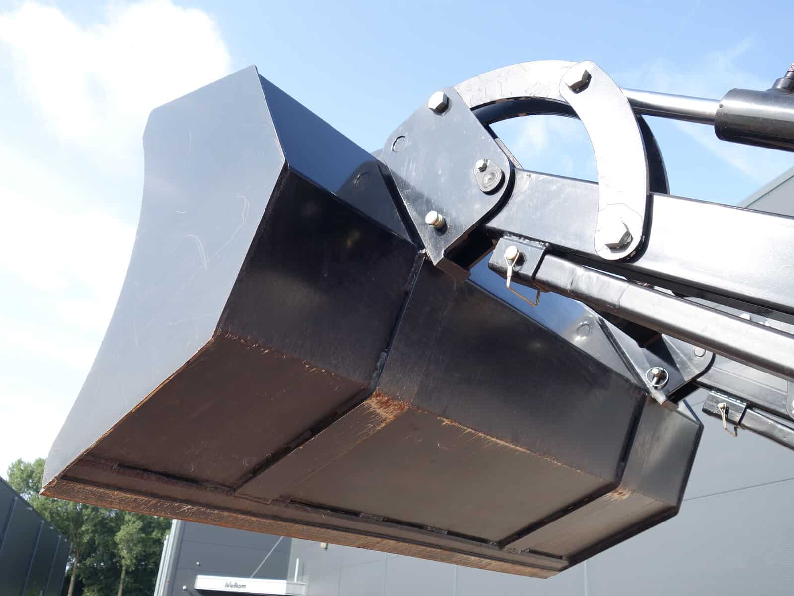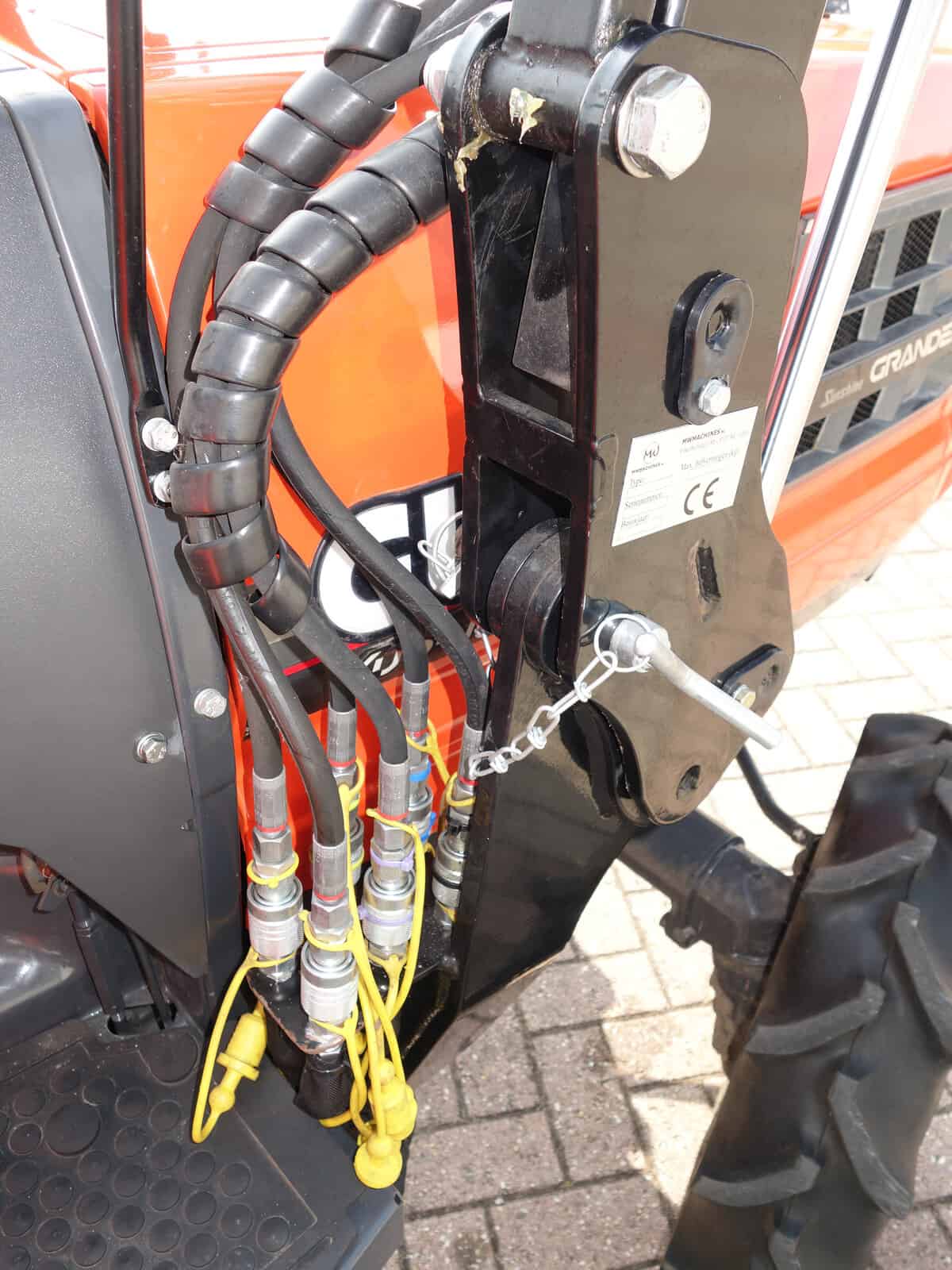 Luxe voorlader met het snelwisselsysteem waardoor de voorlader eenvoudig af- en aangekoppeld kan worden. Externe hydraulische functie op de voorlader. Joystickbediening.