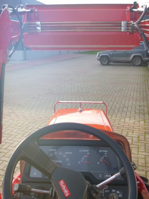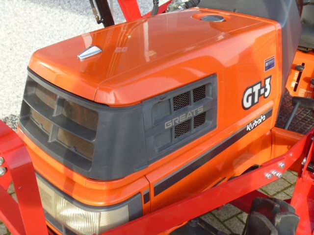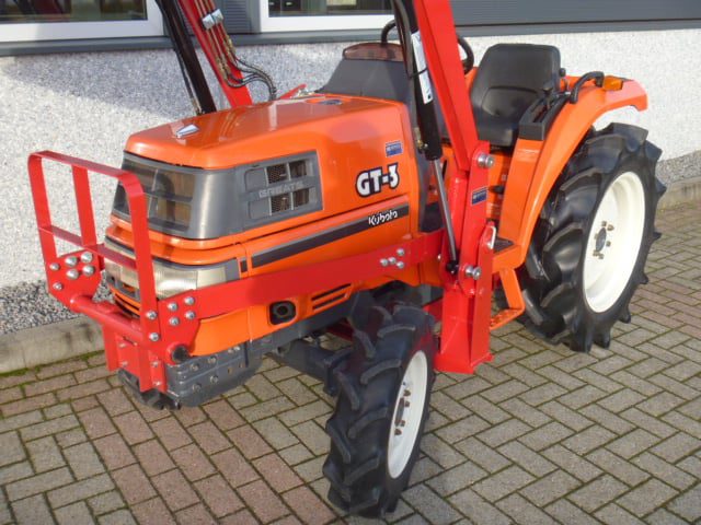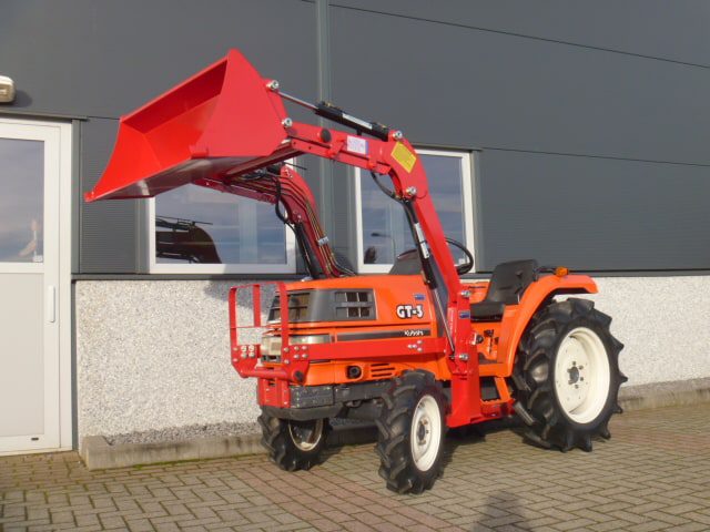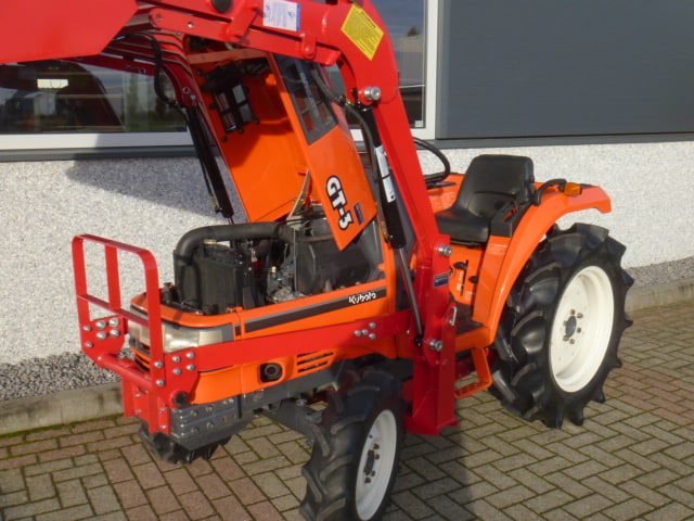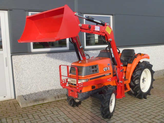 Supernette Kubota GT3 compacttrekker met nieuwe voorlader. Zijschakeling, Superkruipversnelling, Zeer uitgebreide versnellingsbak! Al met al een ideale trekker in combinatie met de voorlader. Trekker behoeft verder geen uitleg, gewoon de foto’s en video eens goed bekijken en zo tot de conclusie komen dat we hier praten over een zeer nette Kubota GL-GT3compleet met voorlader met maar 0719 originele draaiuren. De 25 Pk 4 cilinder dieselmotor loopt supermooi en rustig, direct ingespoten (starten zonder te gloeien) Supercomplete trekker met o.a. Stuurbekrachtiging, Ruime opstap, Hef, Aftakas, Ondertrekhaak. Nieuwe voorlader met het snelwisselsysteem waardoor de voorlader eenvoudig af- en aangekoppeld kan worden. Voorzien van algehele servicebeurt en wordt geleverd met garantie. Eenmalige aanbieding, hier is beslist geen tweede van te koop in deze origineel nette en uitmuntende staat! Koopje!