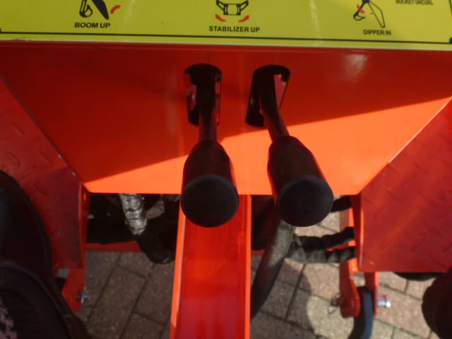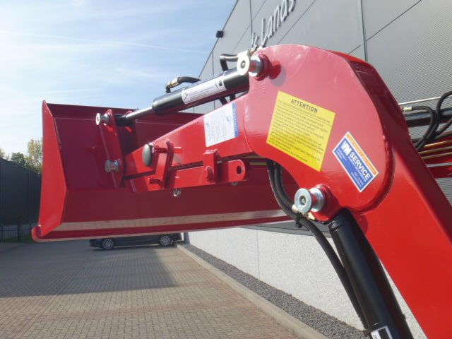 Aan de voorzijde voorzien van nieuwe afkoppelbare voorlader waardoor de gehele voorlader eenvoudig is af- en aan te koppelen. Dubbelwerkdend hydraulisch systeem waardoor er naast het heffen ook naar beneden gedrukt kan worden. Hierdoor kan de bak altijd goed vol geschept worden.