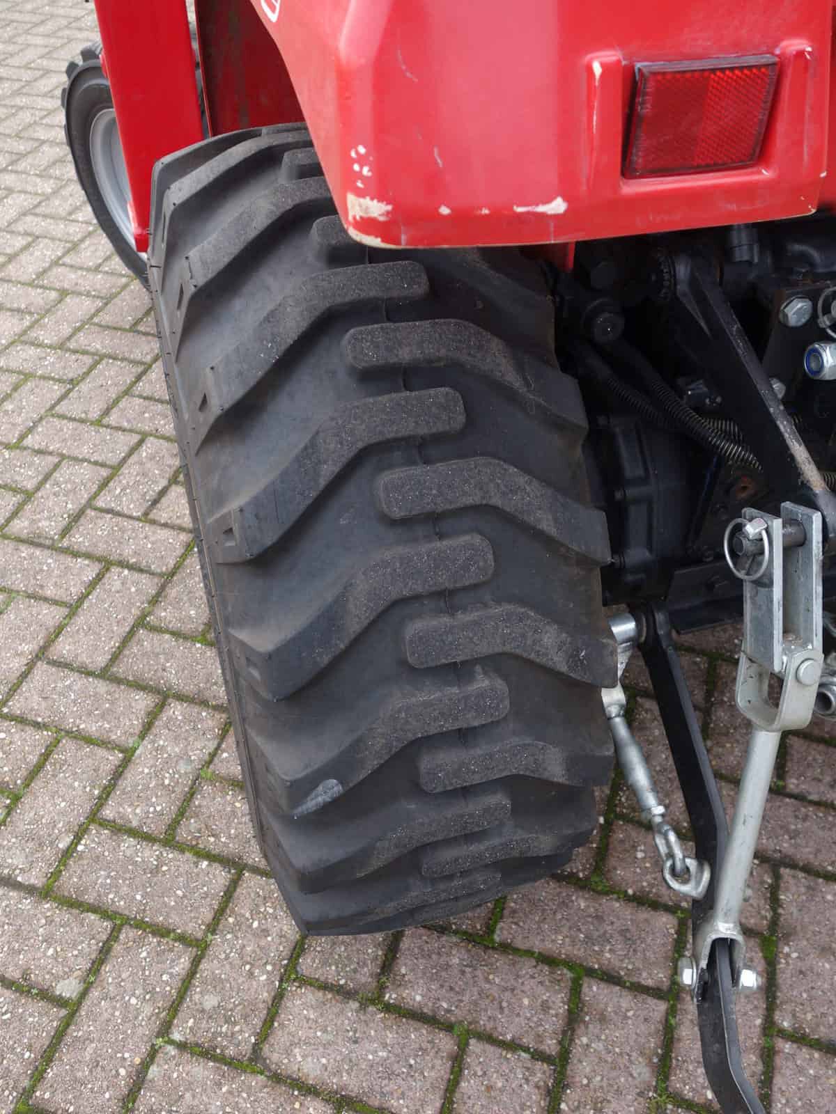 Nagenoeg nieuwe set brede tractiewielen, dat is wat deze trekker bijzonder maakt zowel voor als achter voorzien van nieuwe wielen. Tractiewielen, ook wel Terrabanden genoemd, breed, lage nok, afgeronde ver doorlopende lage nok. Zodat de ondergrond zo min mogelijk beschadigd wordt en toch onder alle omstandigheden een goede tractie gewaarborgd blijft. Een zeer mooie combinatie met zeer weinig draaiuren, maar 0572!! Met ruim 19 Pk voldoende krachtig voor b.v. een maaidek van 150 cm.Trekker heeft hef en aftakas aan de achterzijde. Schakelpook aan de zijkant waardoor een ruime opstap ontstaat. Keurige trekker voorzien van algehele servicebeurt. Klaar voor gebruik en direct inzetbaar.
