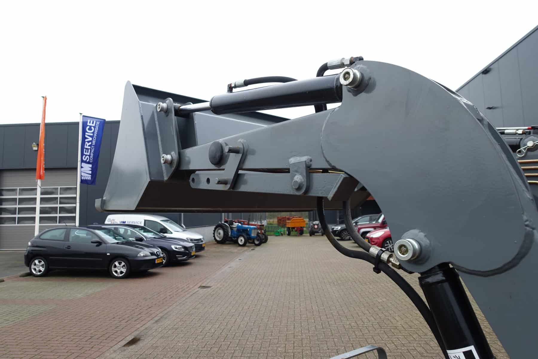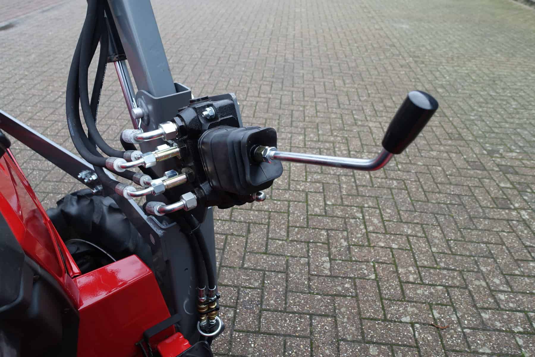 Dat alles in combinatie met de luxe afkoppelbare voorlader. Dubbelwerkend systeem (zowel heffen als drukken). Snelwisselsysteem op de gehele voorlader (snelafzetsysteem). Eenhandlebediening (joystick). Klaar voor gebruik.