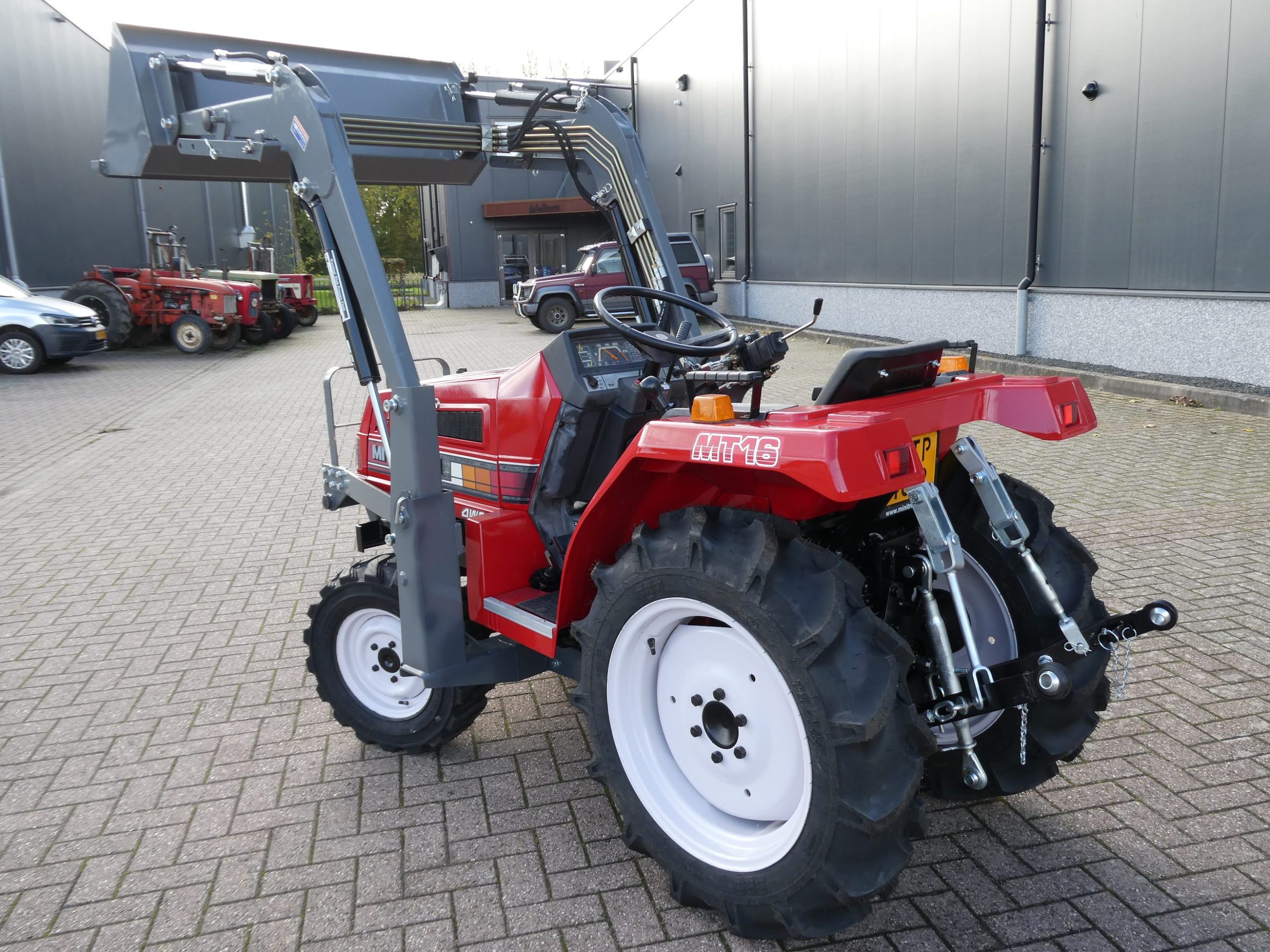November aanbieding; Mitsubishi MT16 4wd compleet met nieuwe afkoppelbare voorlader. Zeer gangbare Mitsubishi compacttrekker, 3 cilinder diesel van 19 Pk, 4wd, zijschakeling, hef, aftakas, topstang.