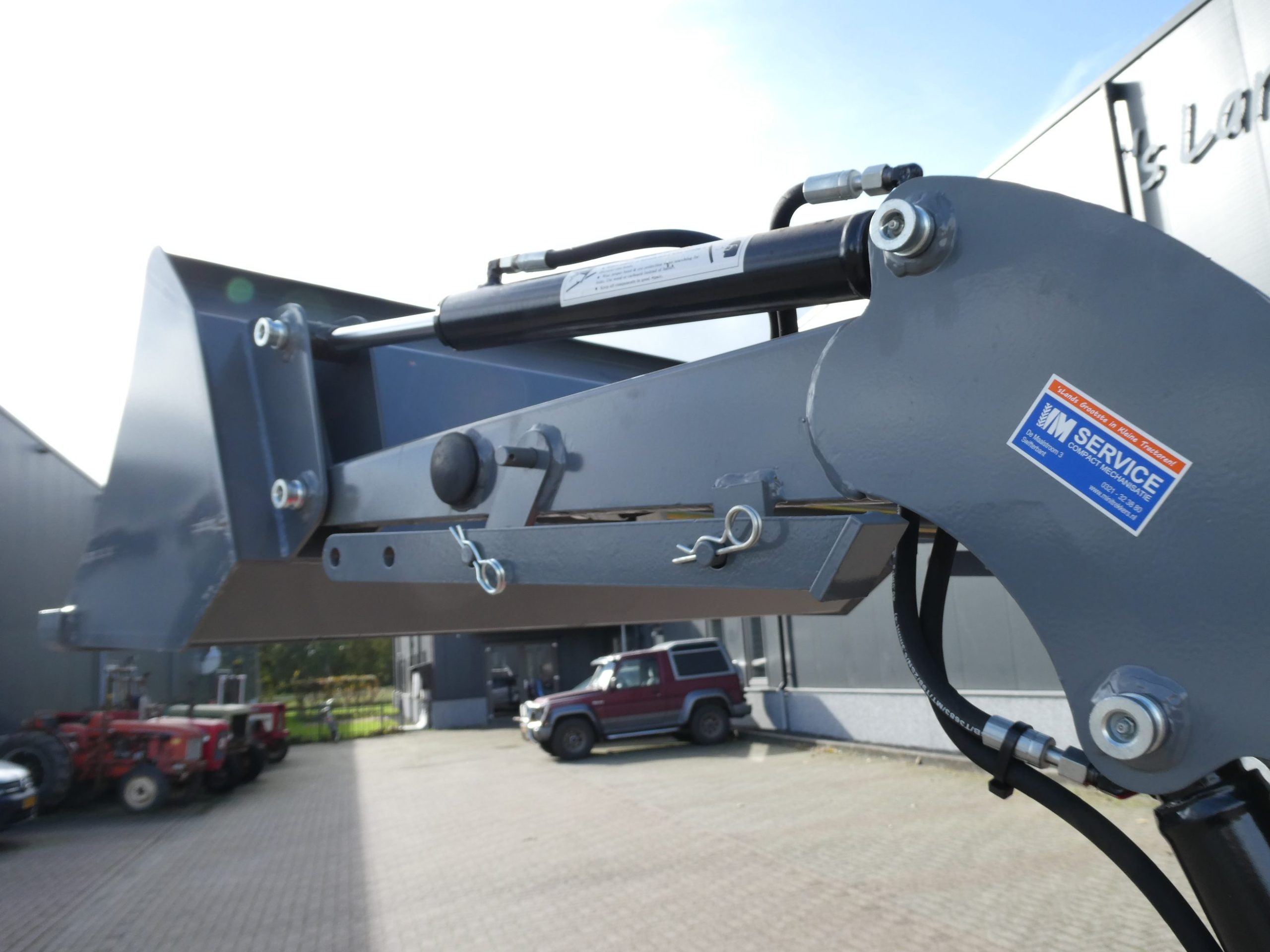 Dat alles in combinatie met de luxe afkoppelbare voorlader. Dubbelwerkend systeem (zowel heffen als drukken). Snelwisselsysteem op de gehele voorlader (snelafzetsysteem). Eenhandlebediening (joystick). Klaar voor gebruik.
