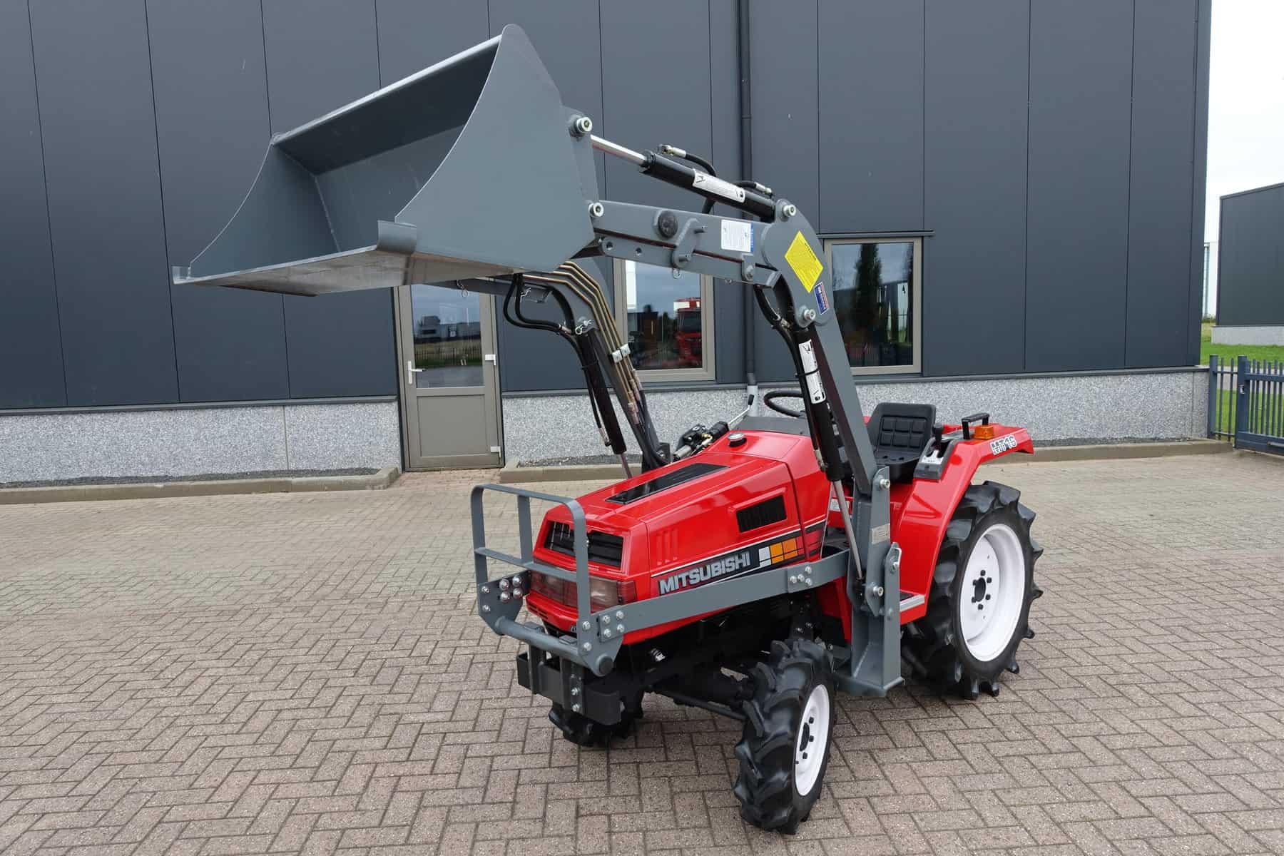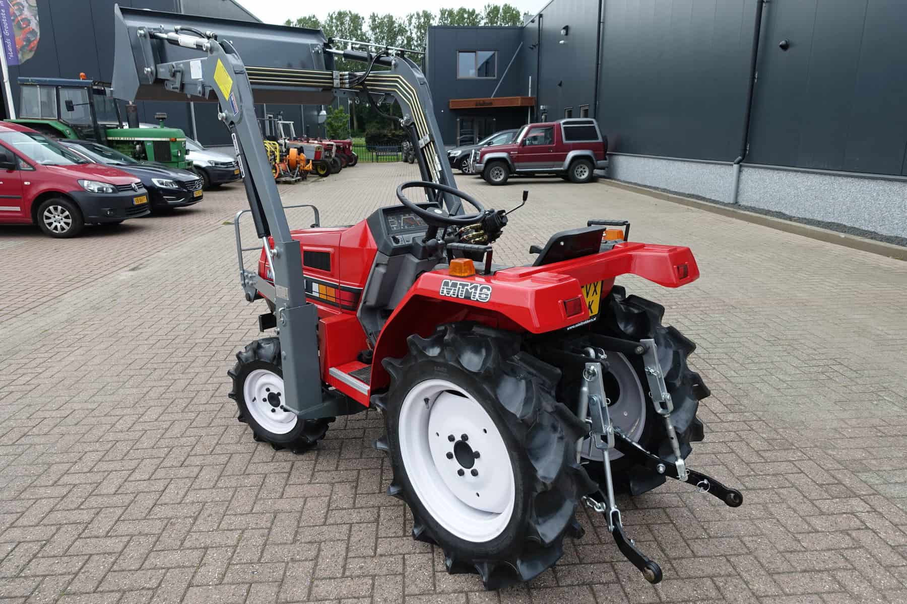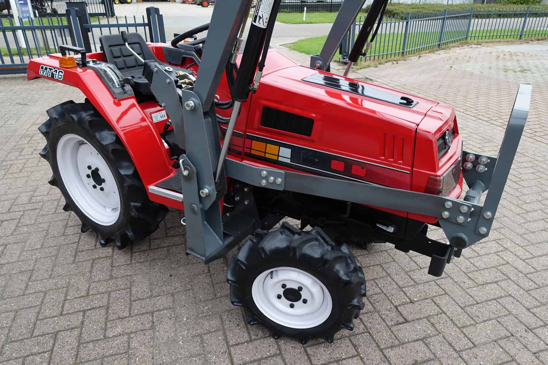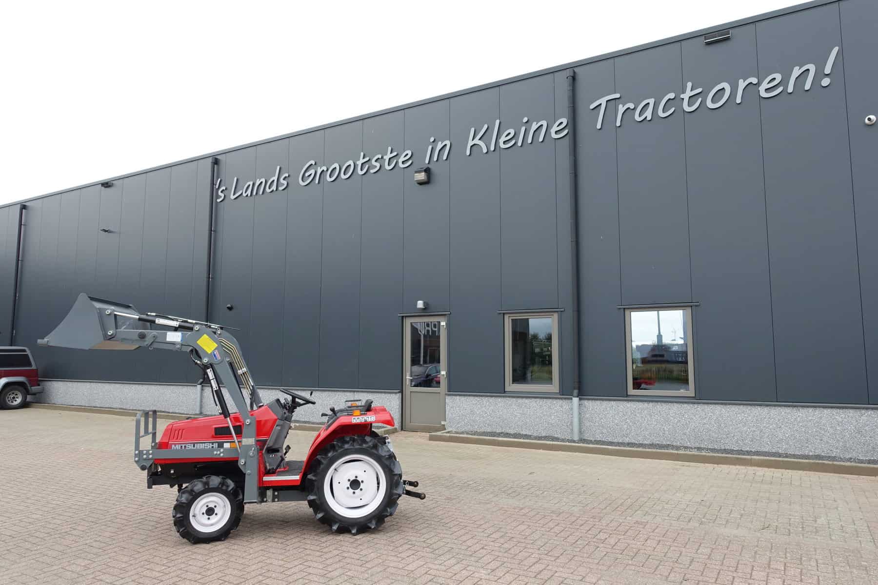 Augustus aanbieding; Mitsubishi MT16 4wd compleet met nieuwe afkoppelbare voorlader. Zeer gangbare Mitsubishi compacttrekker, 3 cilinder diesel van 19 Pk, 4wd, zijschakeling, hef, aftakas, topstang.