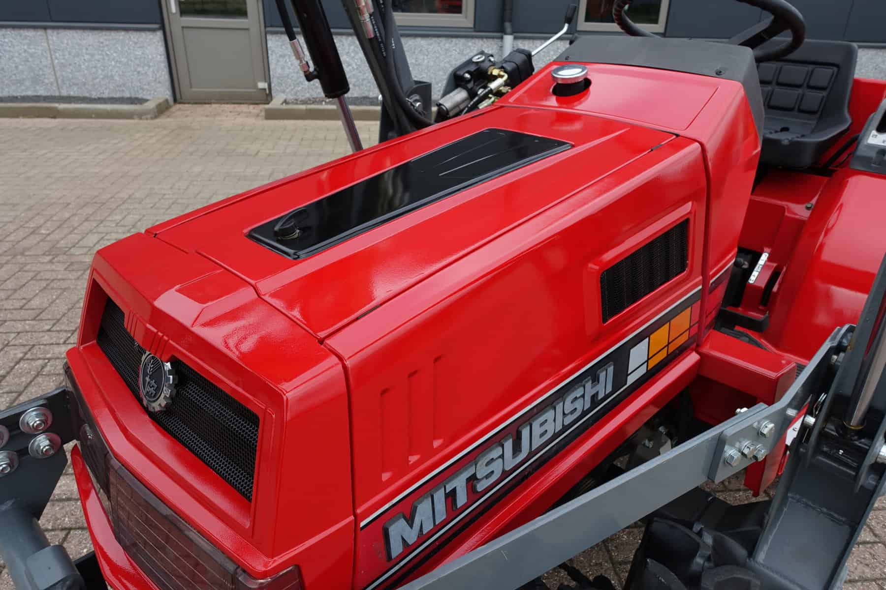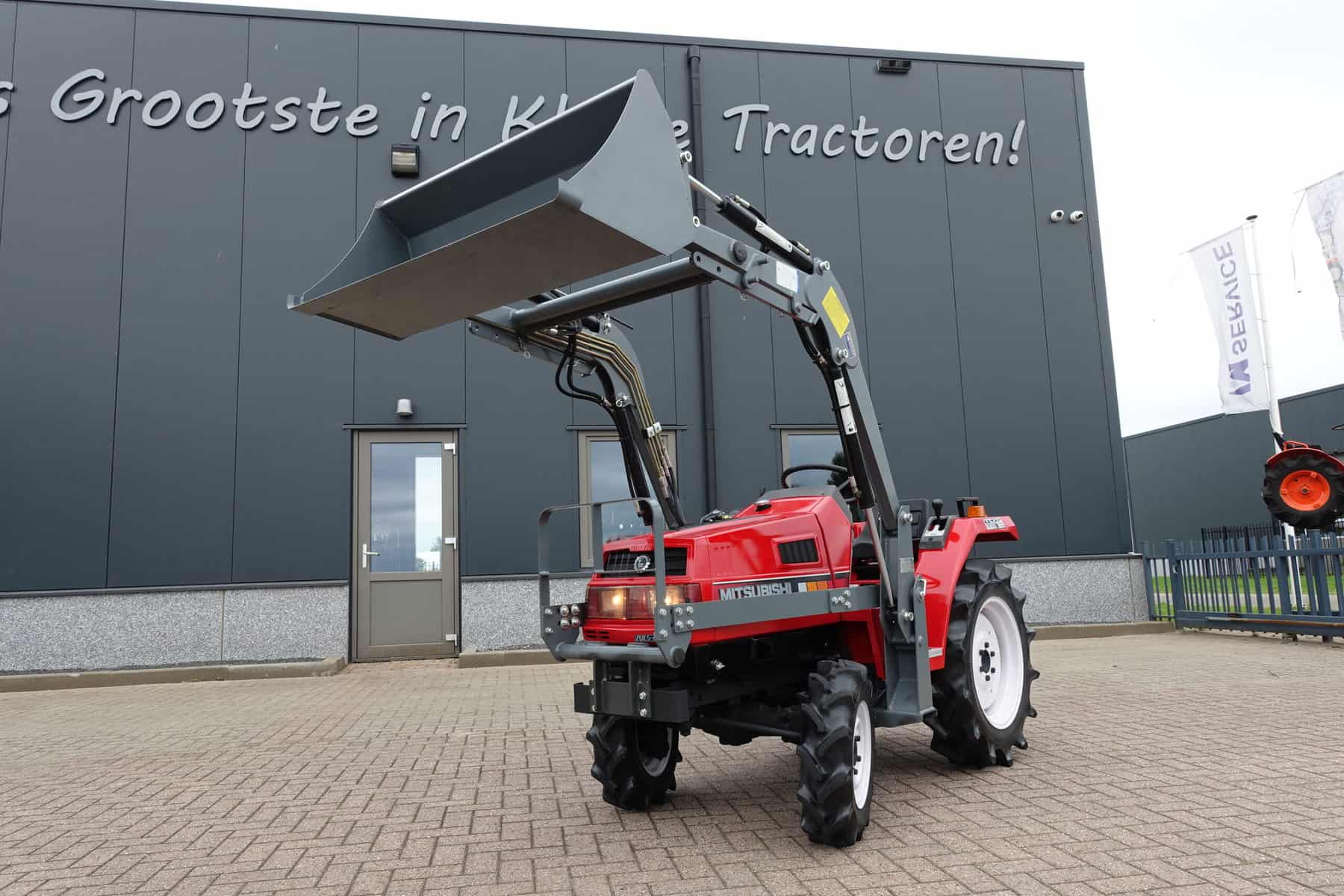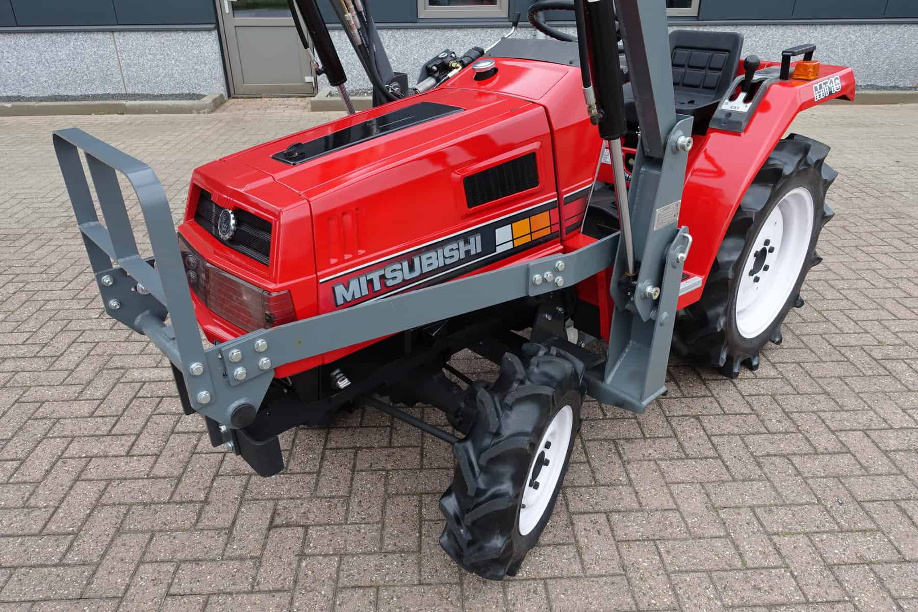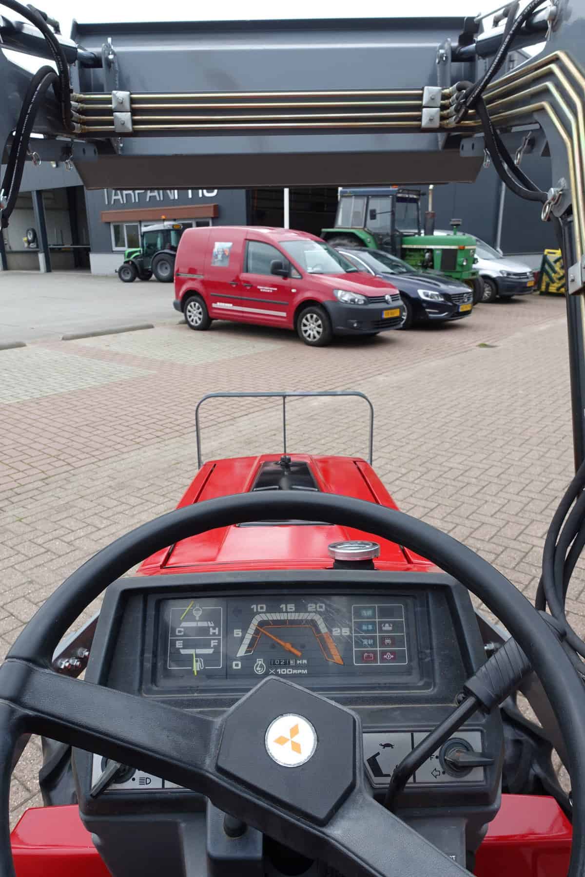 Augustus aanbieding; Mitsubishi MT16 4wd compleet met nieuwe afkoppelbare voorlader. Zeer gangbare Mitsubishi compacttrekker, 3 cilinder diesel van 19 Pk, 4wd, zijschakeling, hef, aftakas, topstang.