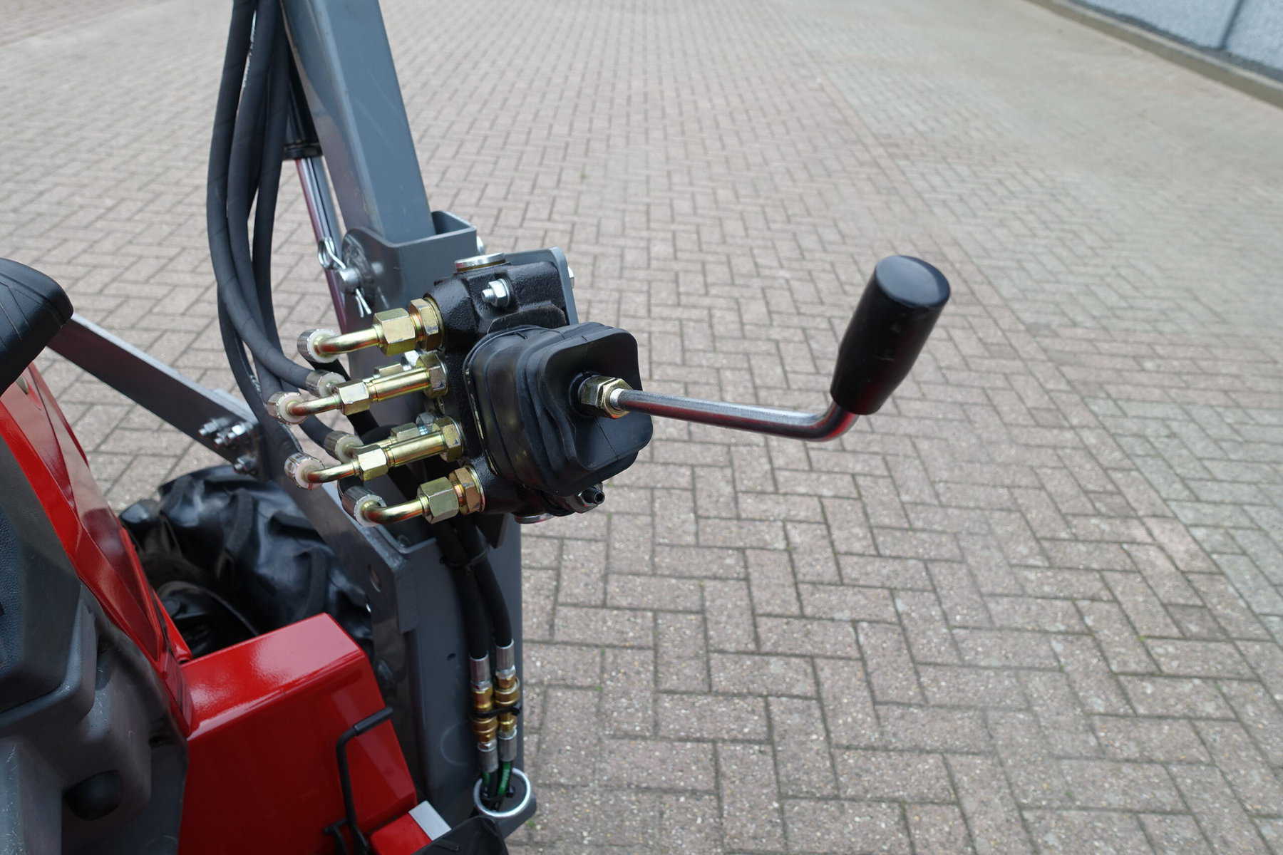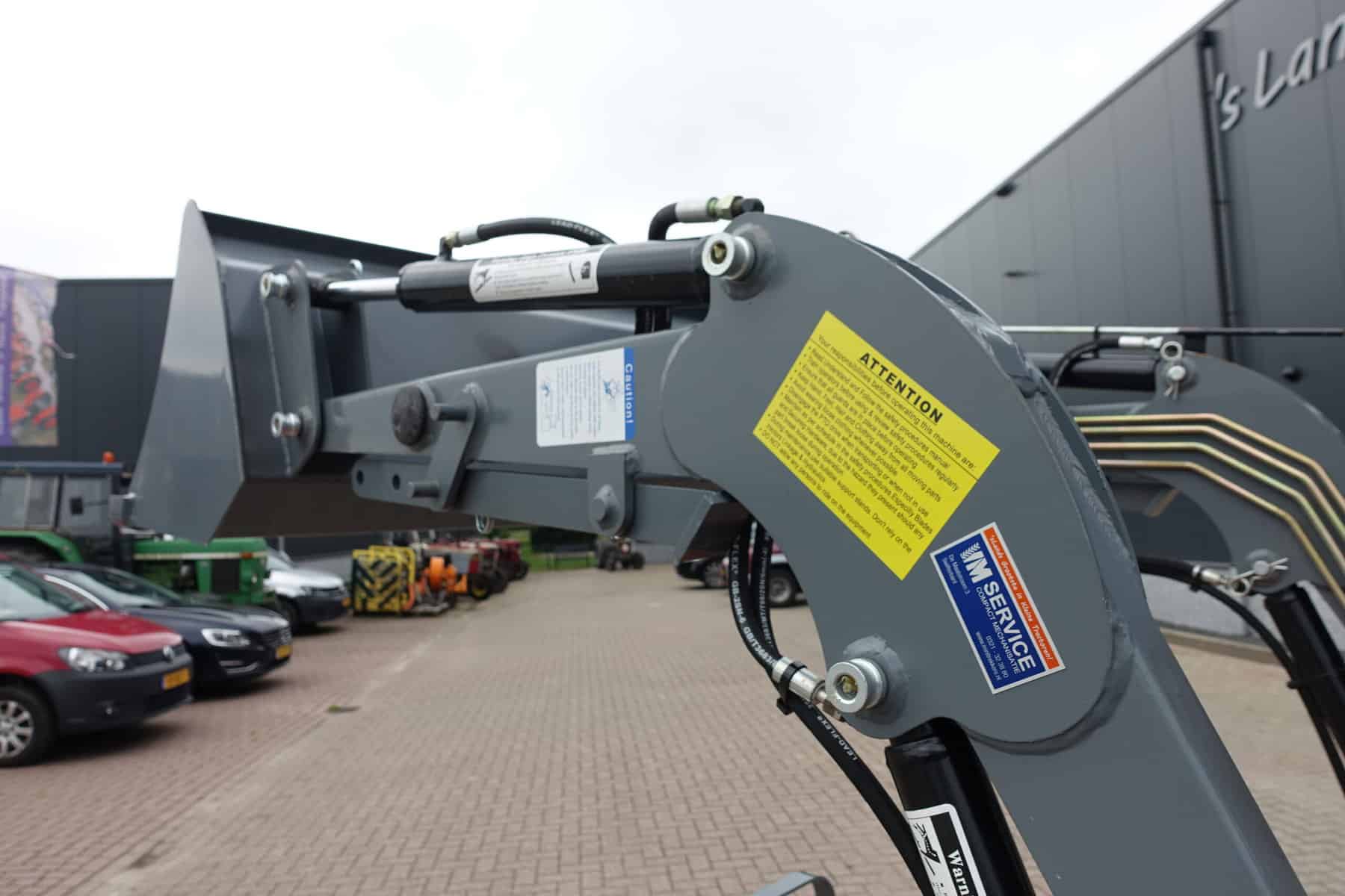 Dat alles in combinatie met de luxe afkoppelbare voorlader. Dubbelwerkend systeem (zowel heffen als drukken). Snelwisselsysteem op de gehele voorlader (snelafzetsysteem). Eenhandlebediening (joystick). Klaar voor gebruik.