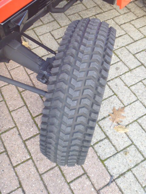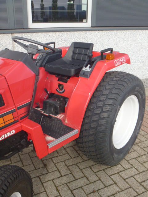 Kenmerkend voor deze bijzonder Mitsubishi MT18 4wd zijn de nieuwe brede gazonbanden.