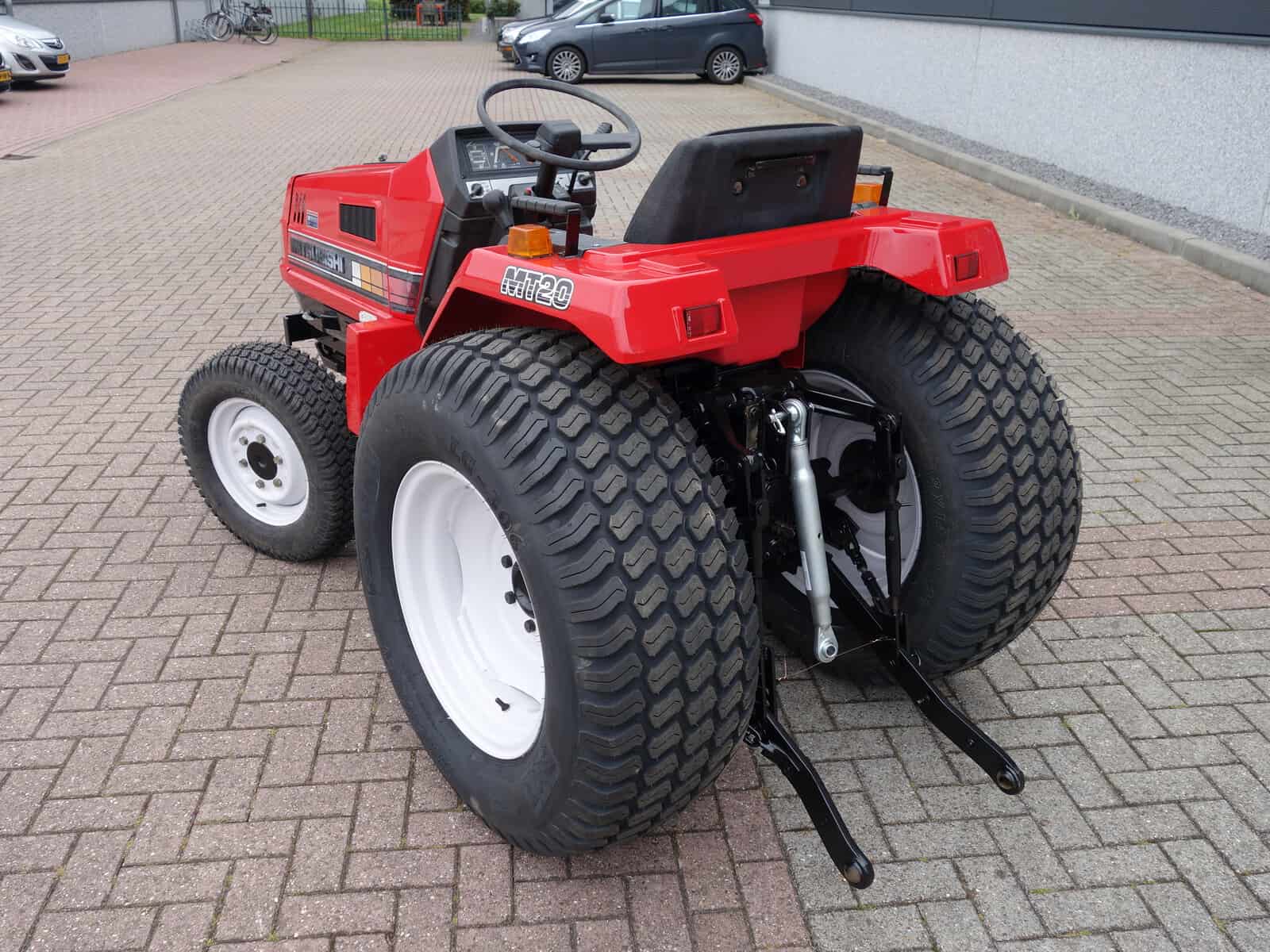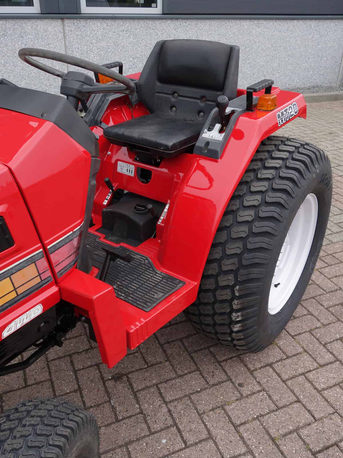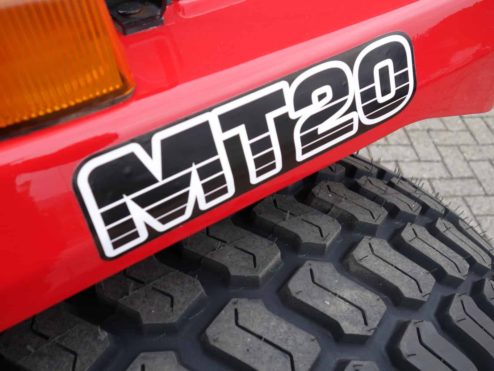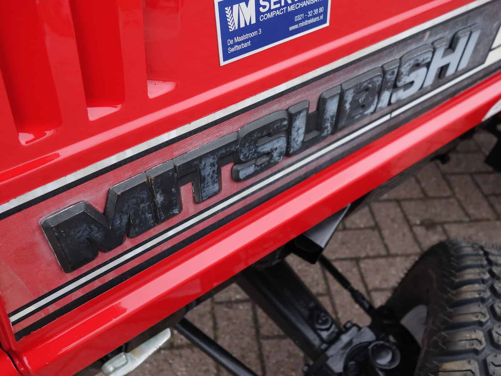 Kenmerkend voor deze bijzonder Mitsubishi MT20 4wd zijn de nagenoeg nieuwe brede gazonbanden.