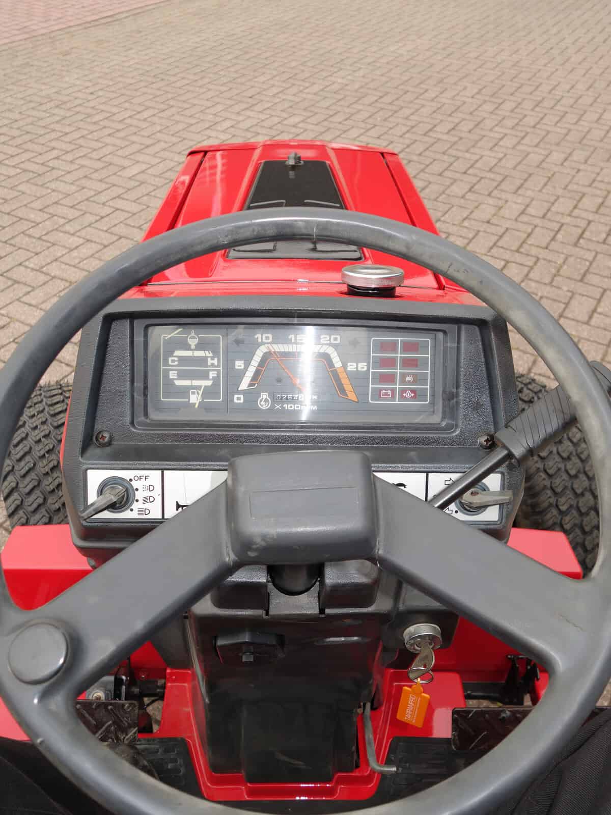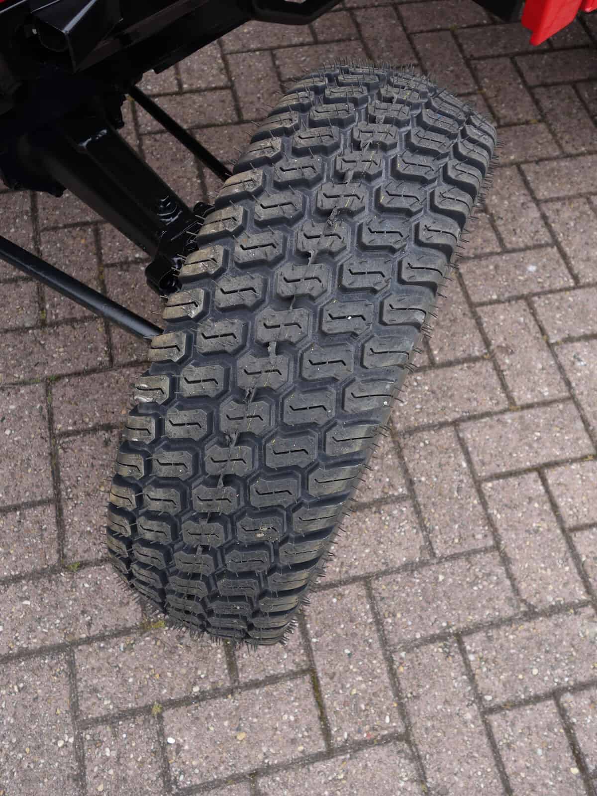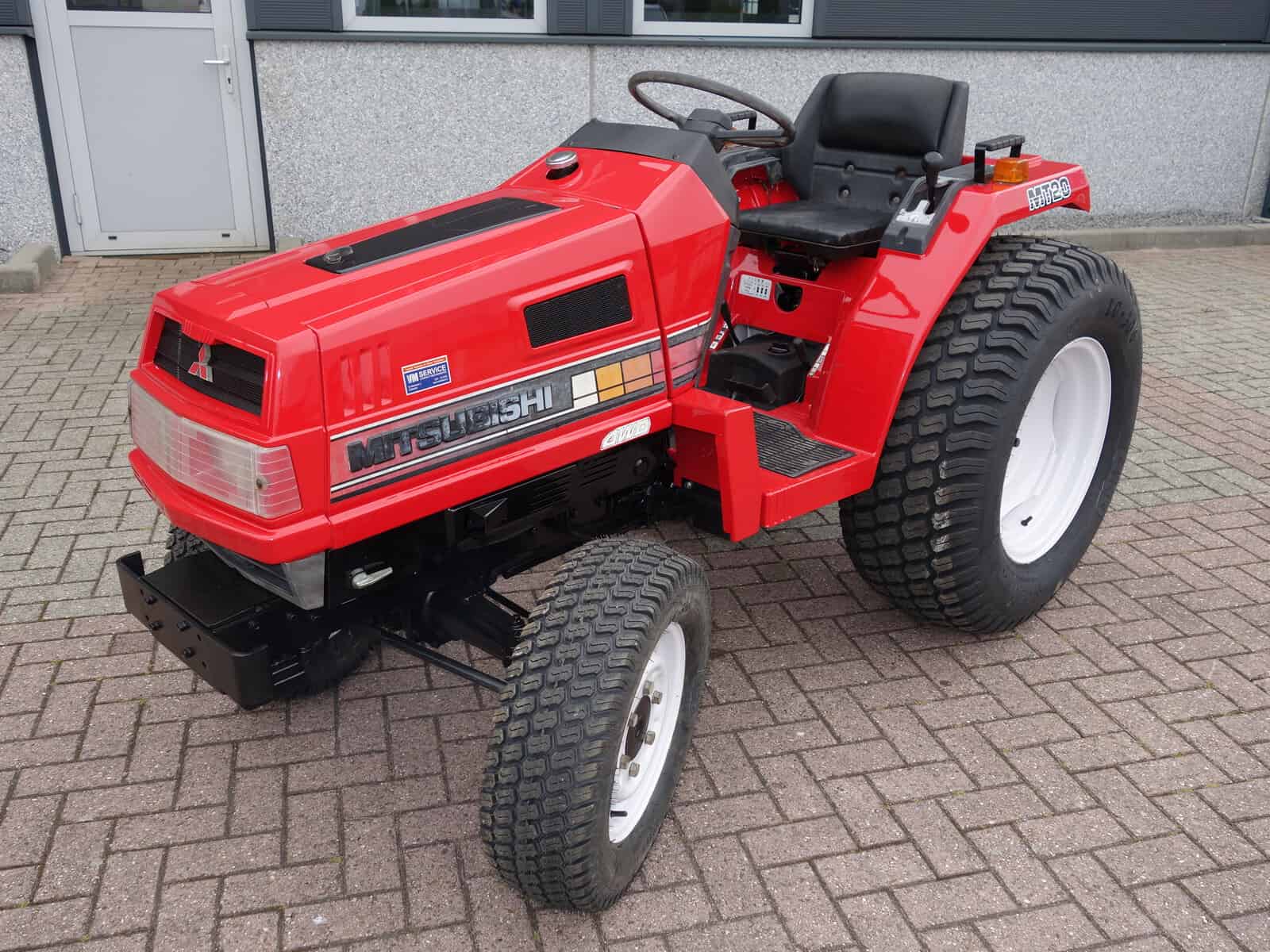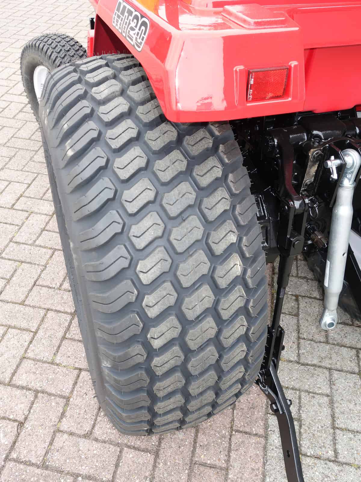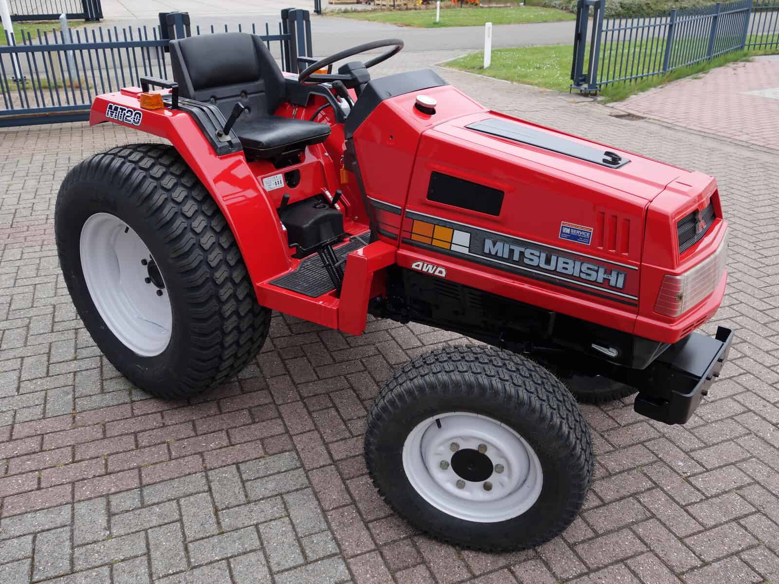 Kenmerkend voor deze bijzonder Mitsubishi MT20 4wd zijn de nagenoeg nieuwe brede gazonbanden.