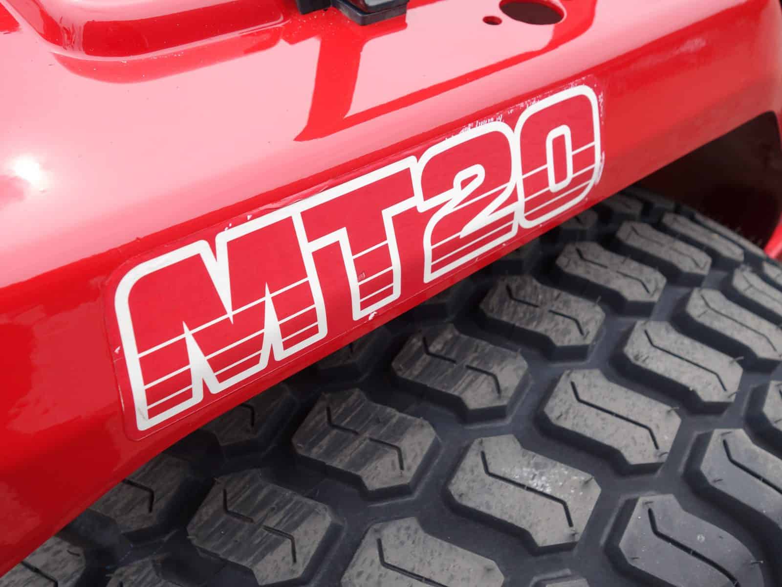Kenmerkend voor deze bijzonder Mitsubishi MT20 4wd zijn de nieuwe brede gazonbanden.