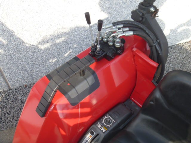 Dat alles in combinatie met de nieuwe afkoppelbare voorlader. Dubbelwerkend systeem (zowel heffen als drukken). Snelwisselsysteem op de gehele voorlader (snelafzetsysteem). Eenhandlebediening (joystick). Combinatie is prima geschikt voor het verplaatsen van grote balen. Klaar voor gebruik.