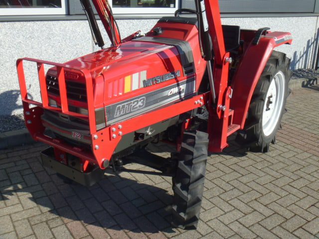 Unieke trekker / voorlader combinatie! Uniek doordat er door het samenvoegen van beide componenten een prachtig en zeer functioneel eindresultaat is ontstaan; Te beginnen met de Mitsubishi MT23 4wd met maar 0831 Draaiuren! Zeer nette compacttrekker met een 4 cilinder dieselmotor van 27 Pk. Loopt zeer mooi en rustig. Voorzien van nagenoeg alle opties, waaronder; Omkeerschakeling, Zijschakeling, Kruipbak, Stuurbekrachtiging, Hef, Aftakas, Rondom nieuwe banden, Algehele servicebeurt. Dat alles in combinatie met de nieuwe afkoppelbare voorlader. Dubbelwerkend systeem (zowel heffen als drukken). Snelwisselsysteem op de gehele voorlader (snelafzetsysteem). Eenhandlebediening (joystick). Combinatie is prima geschikt voor het verplaatsen van grote balen. Klaar voor gebruik.
