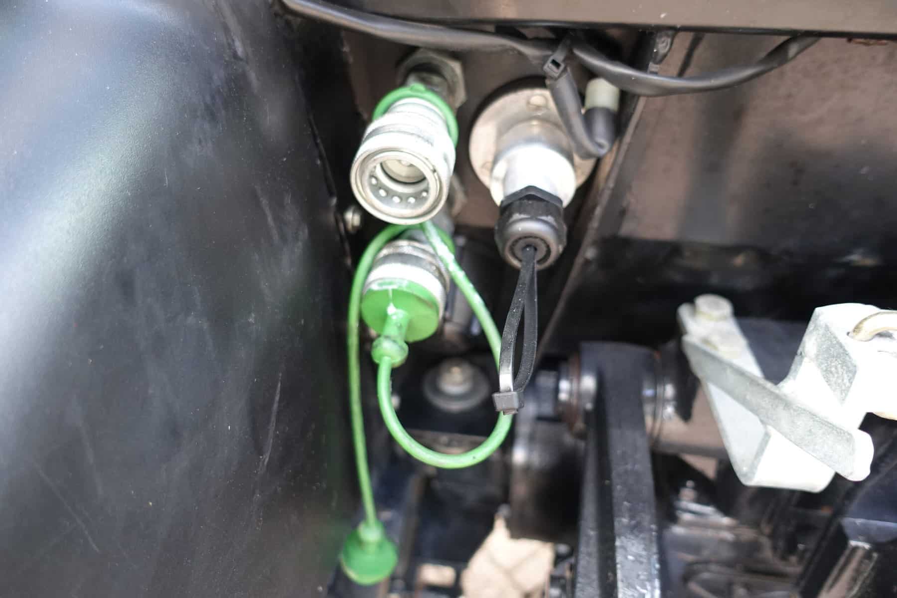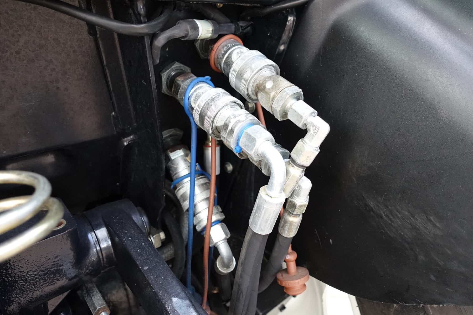- Drie dubbelwerkende hydraulische ventielen aan de achterzijde (zes aansluitingen)