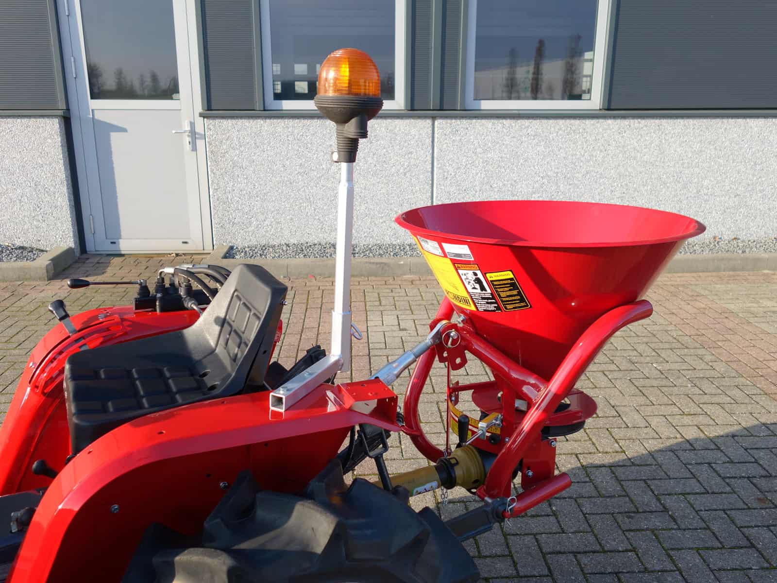 De “Niet meer glad op uw pad” schuifcombinatie is tevens uitgevoerd met een zoutstrooier aan de achterzijde en een zwaailamp.