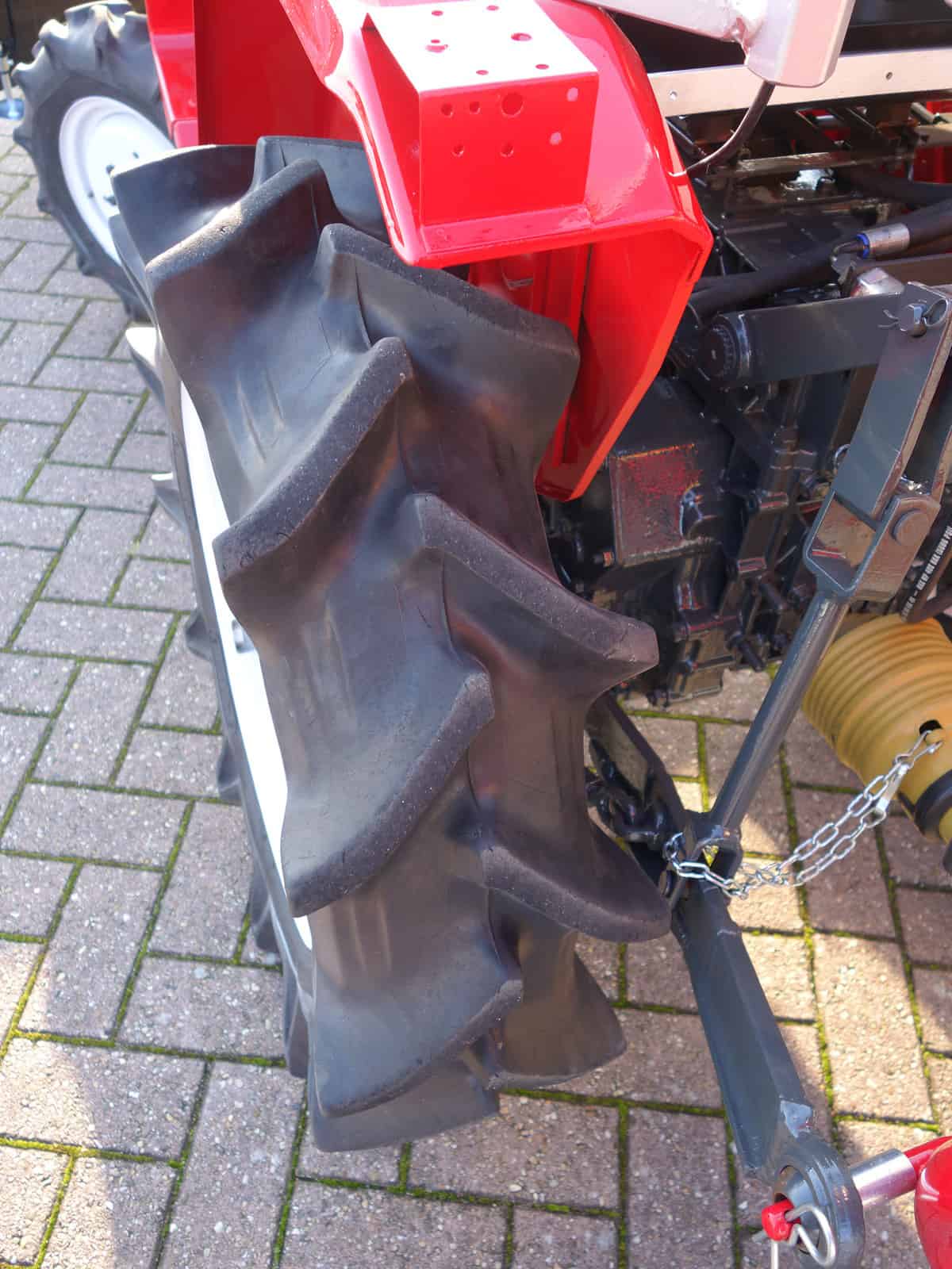 Nieuwe voorbanden, grote achterwielen met een goed profiel waardoor de trekker ook in de sneeuw een optimale tractie heeft.