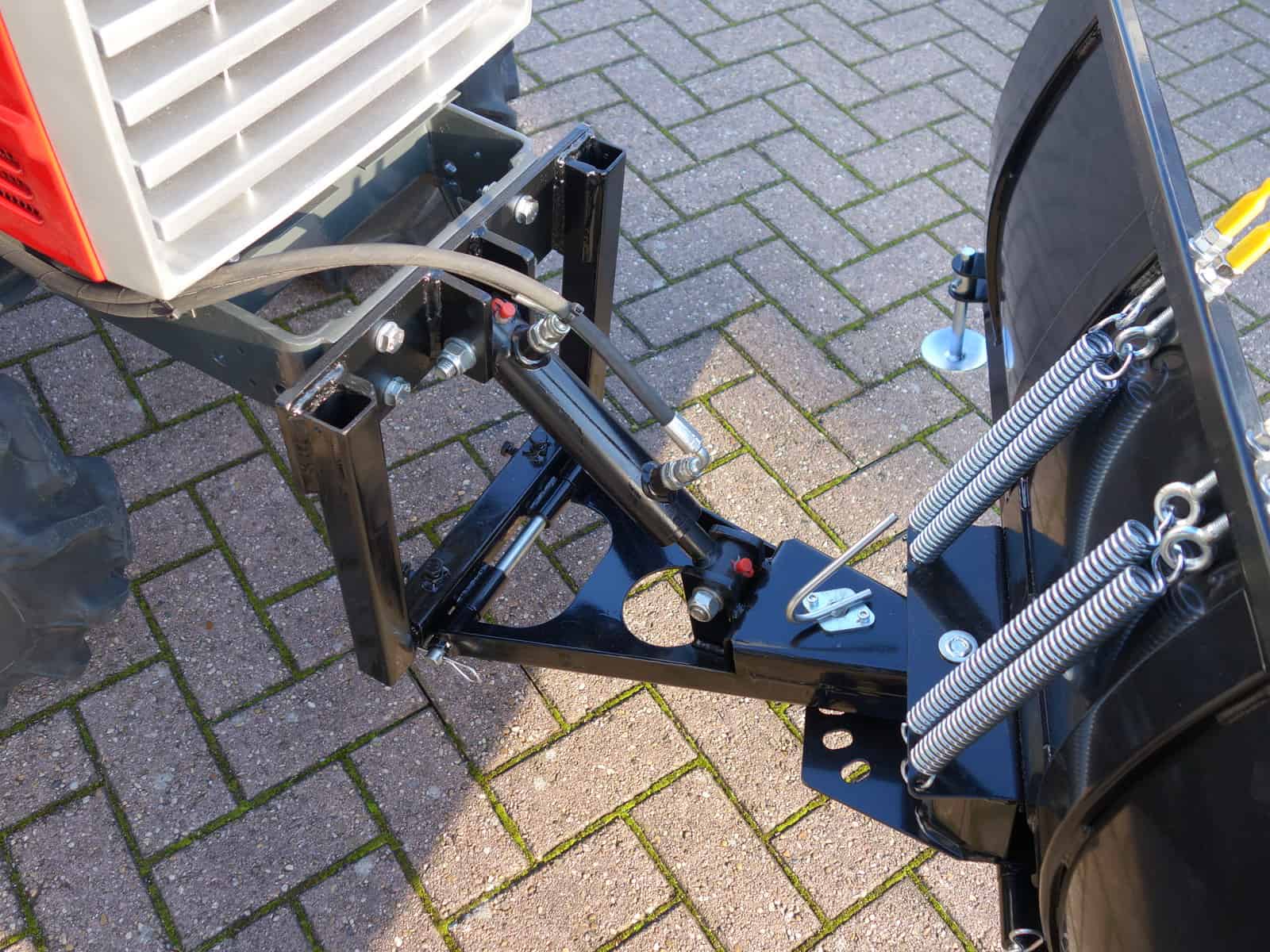 Nieuwe 140cm brede hydraulische sneeuwschuif aan de voorzijde. Hydraulische heffen, Dubbelwerkende bediening!! Hierdoor kan de schuif ook echt op de grond “gedrukt”worden.