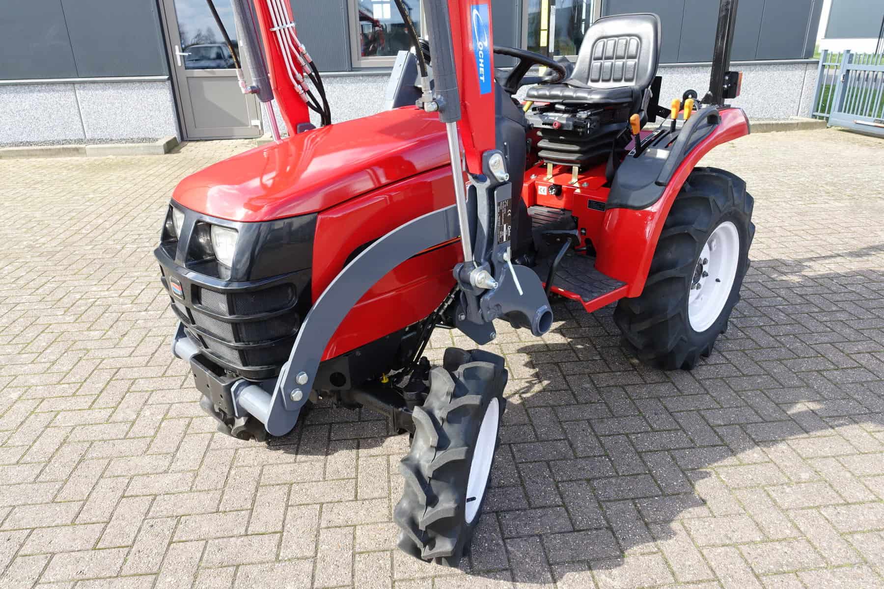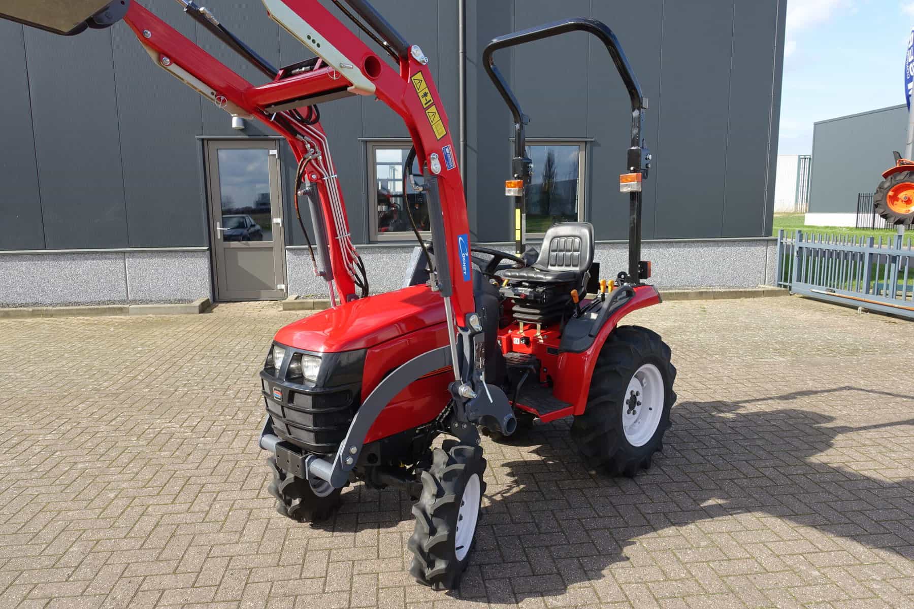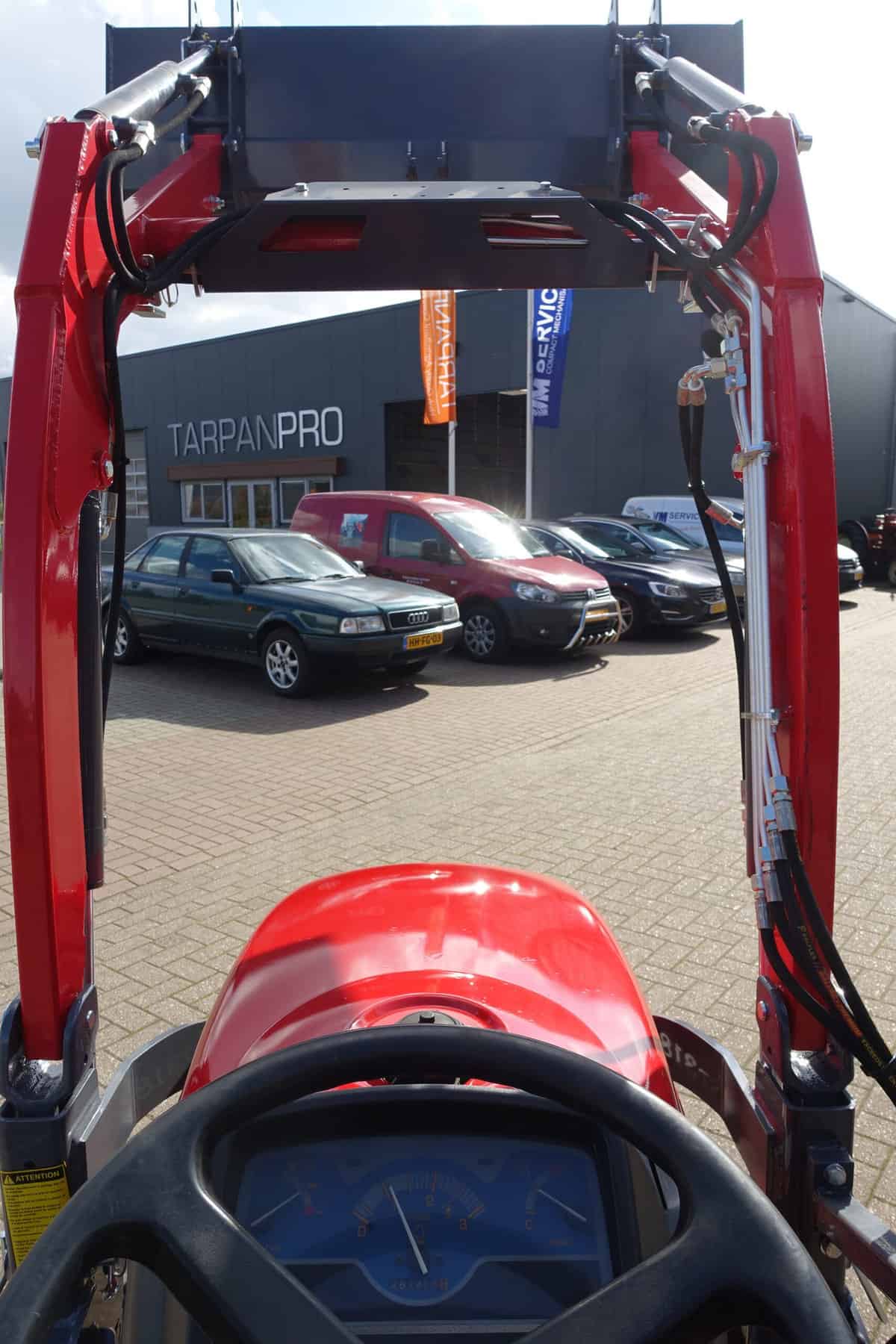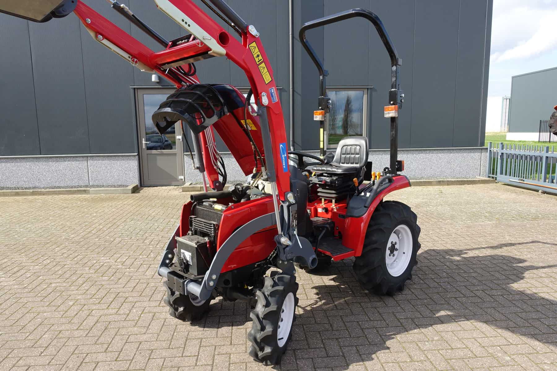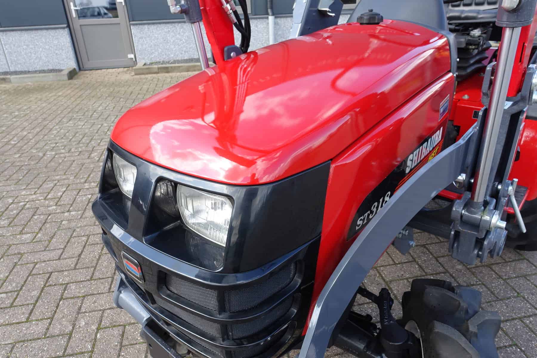 Shibaura ST318 4wd met nieuwe voorlader. Voorlader is voorzien van het snelwisselsysteem waardoor de voorlader in zijn geheel eenvoudig af te koppelen is.