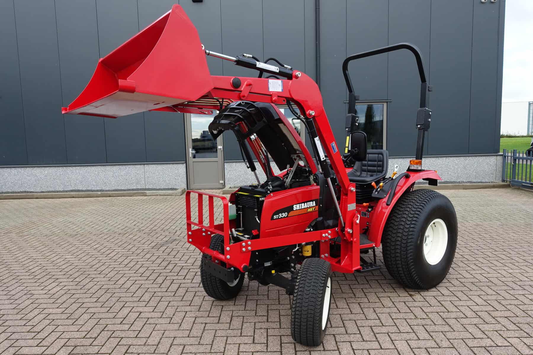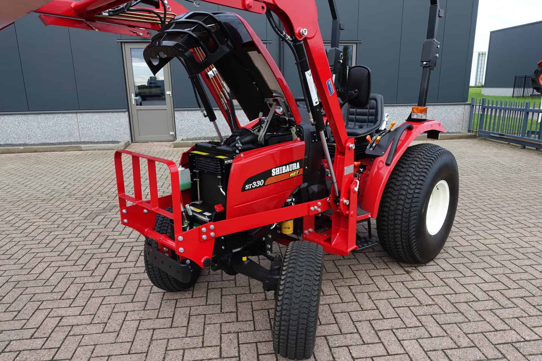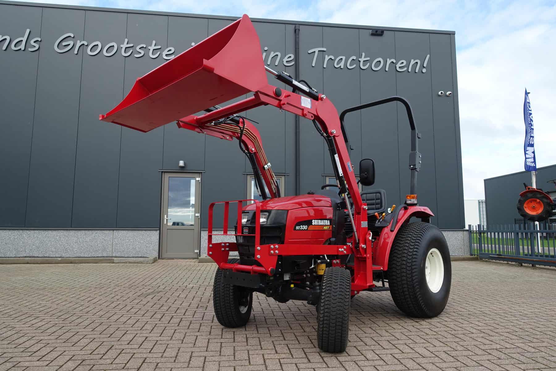 Automaatuitvoering (HST), Voorlader, 34,5 Pk, Hef en aftakas aan de achterzijde, Stuurbekrachtiging. Shibaura is Japanse topkwaliteit, hoge afwerking en hoogwaardige bewezen techniek. Krachtig door 34,5 Pk dieselmotor, hoog hefvermogen op de voorlader doordat de lader zeer dicht op de trekker gebouwd is. Voorlader is tevens voorzien van snelwisselsysteem zodat de gehele voorlader eenvoudig en snel is af te koppelen.