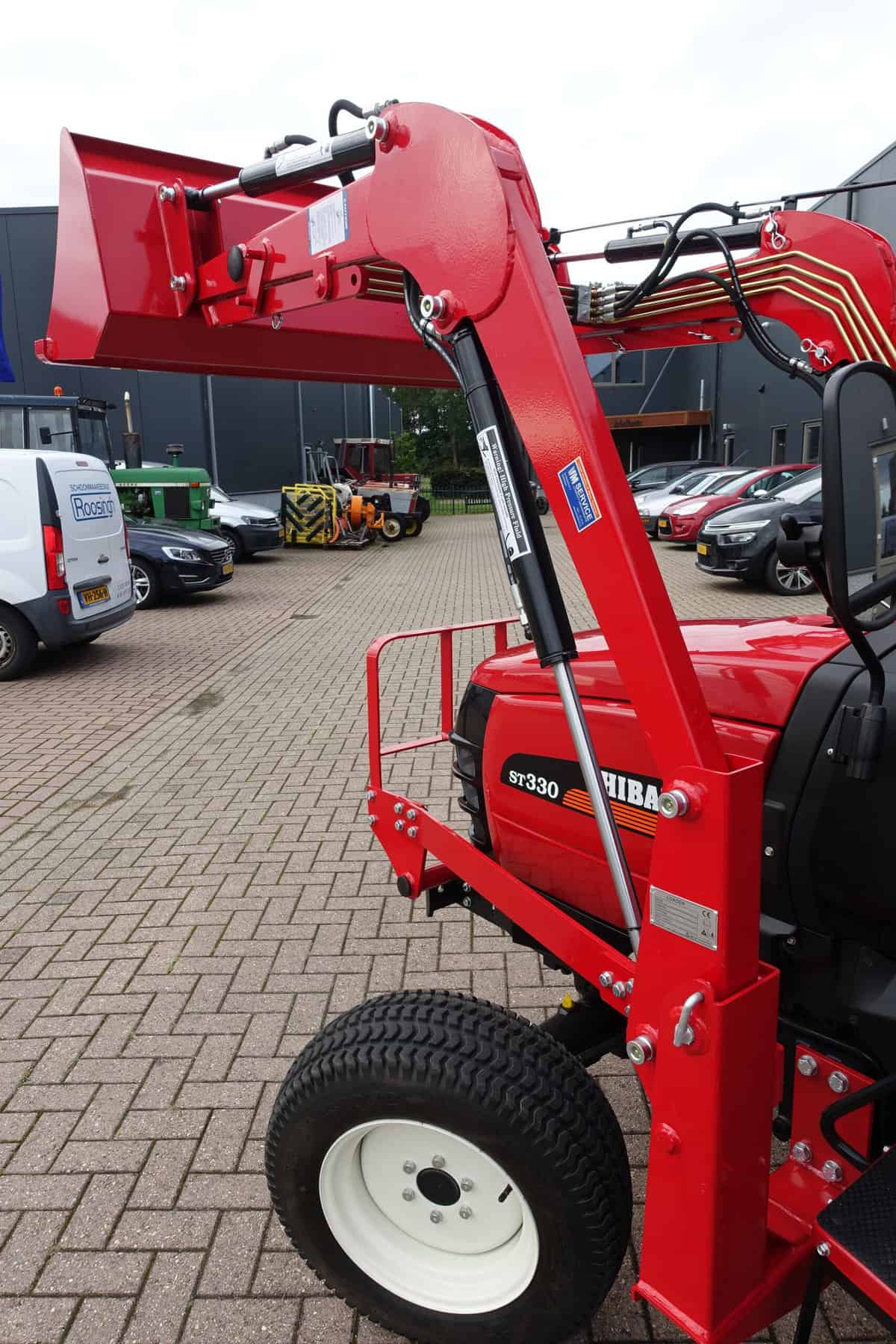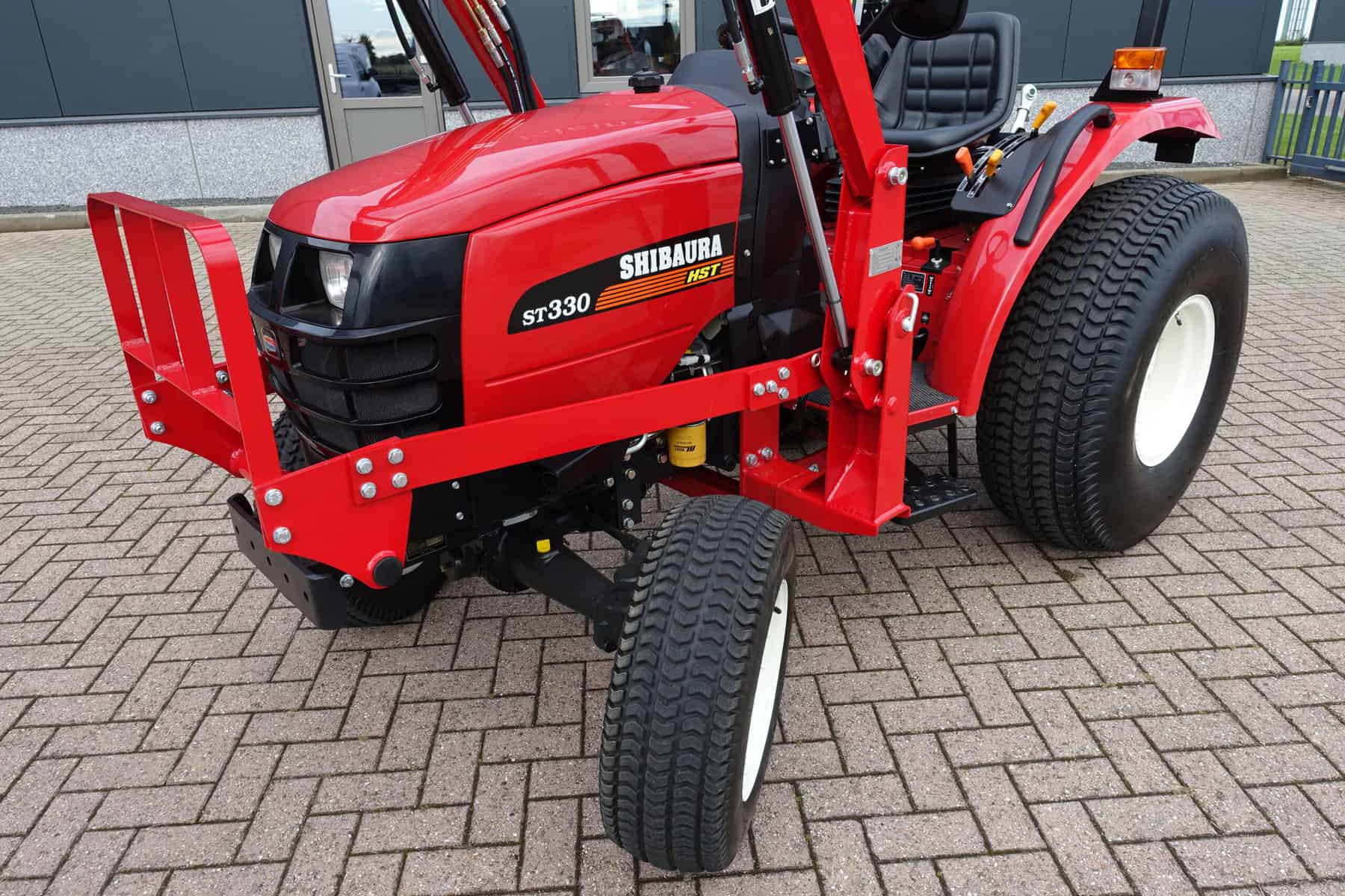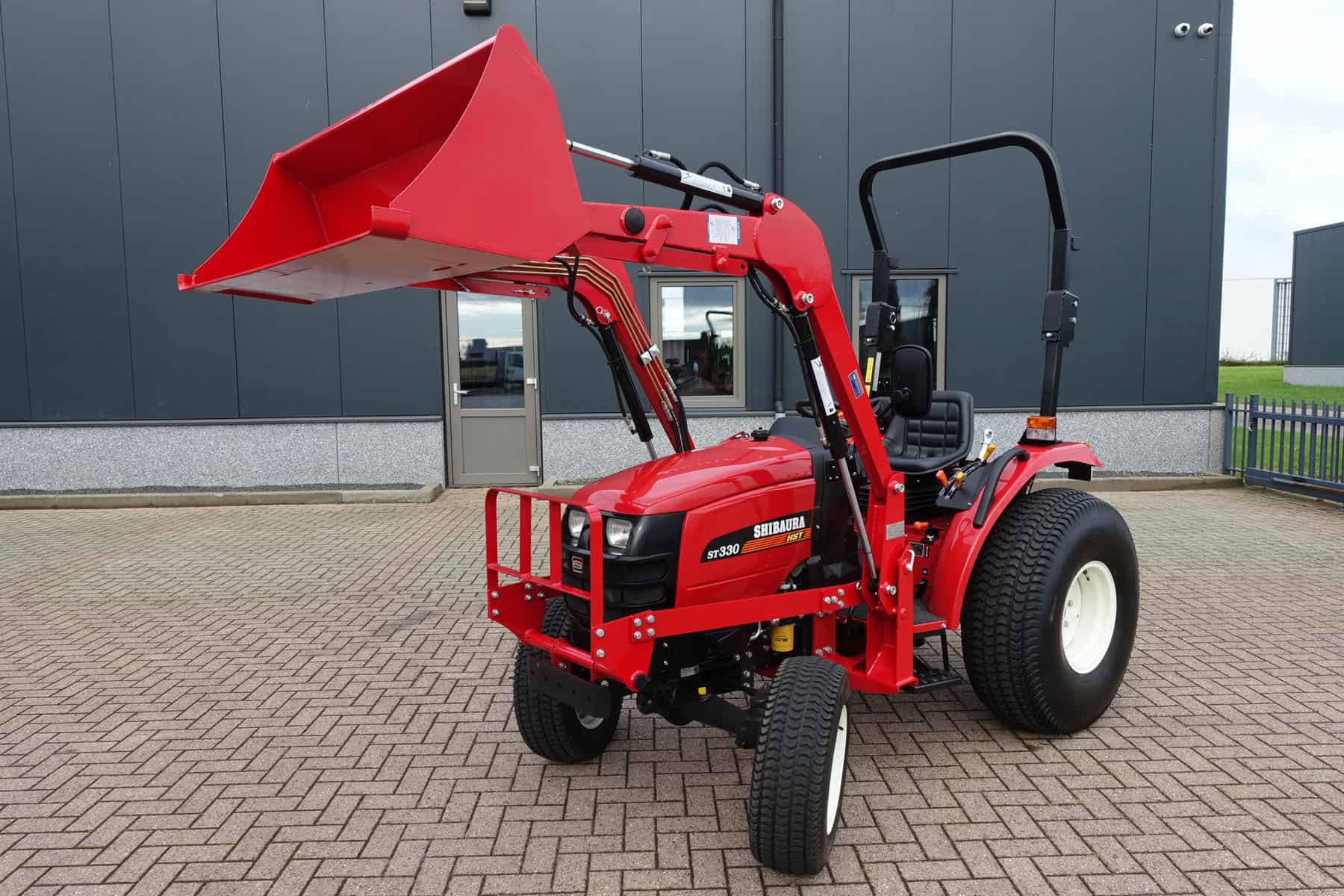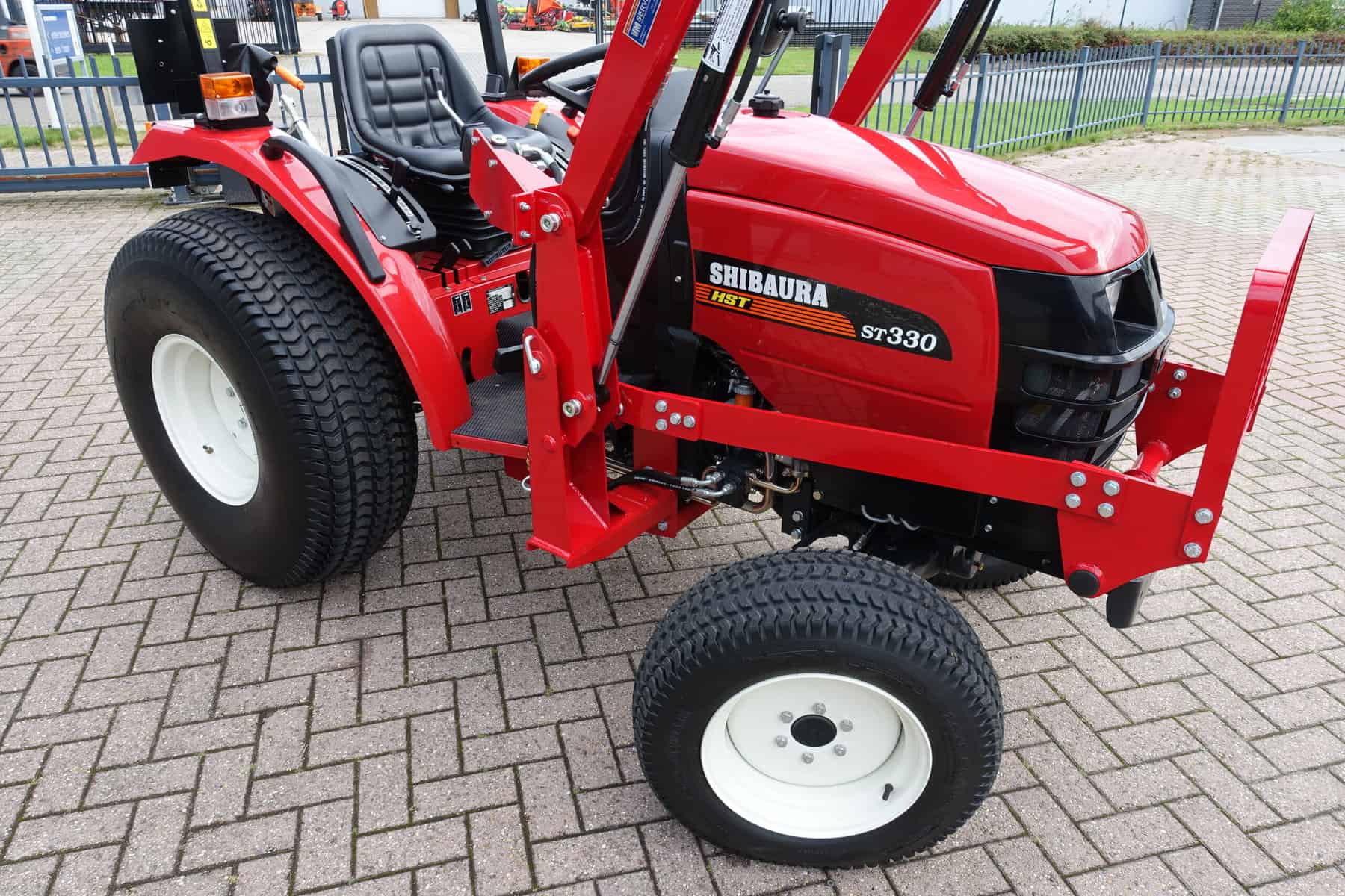 Automaatuitvoering (HST), Voorlader, 34,5 Pk, Hef en aftakas aan de achterzijde, Stuurbekrachtiging. Shibaura is Japanse topkwaliteit, hoge afwerking en hoogwaardige bewezen techniek. Krachtig door 34,5 Pk dieselmotor, hoog hefvermogen op de voorlader doordat de lader zeer dicht op de trekker gebouwd is. Voorlader is tevens voorzien van snelwisselsysteem zodat de gehele voorlader eenvoudig en snel is af te koppelen.