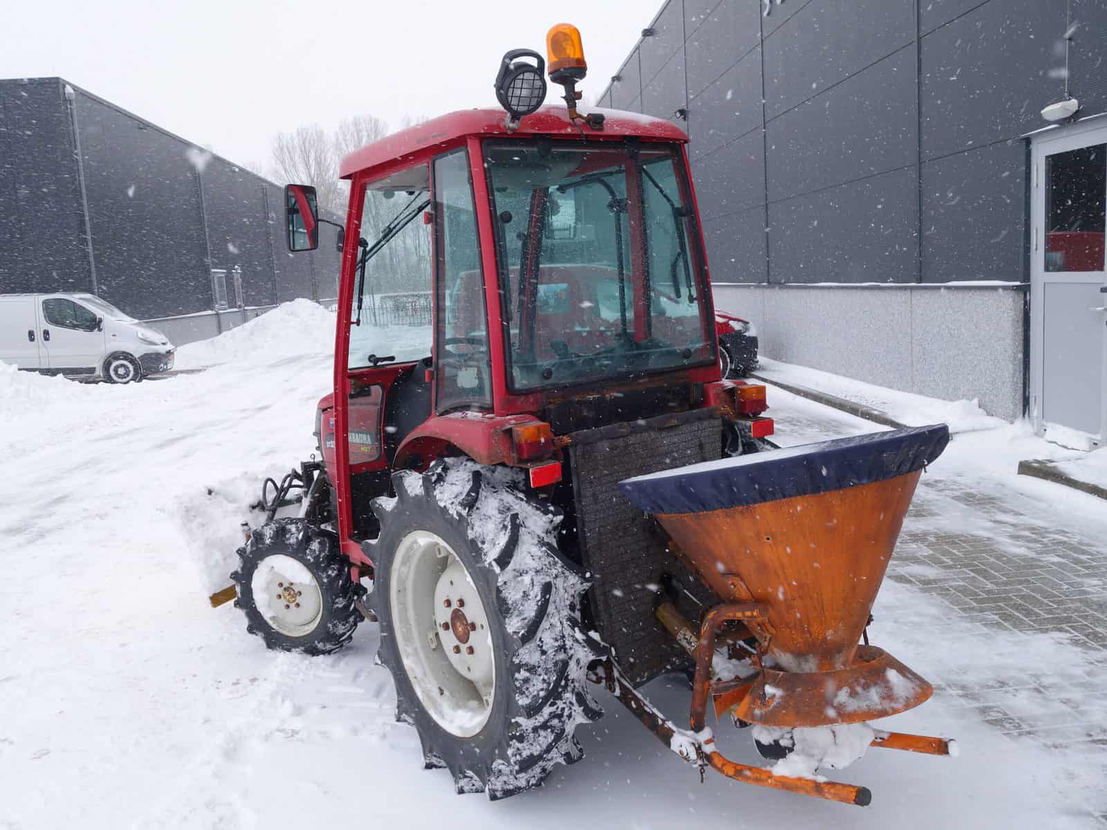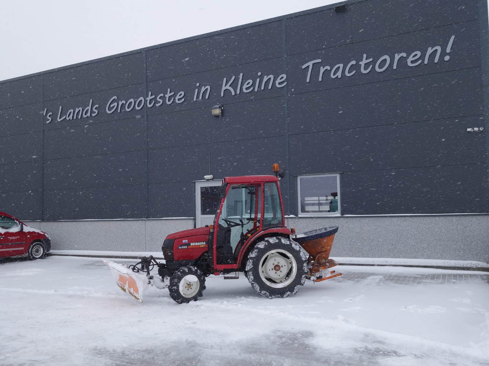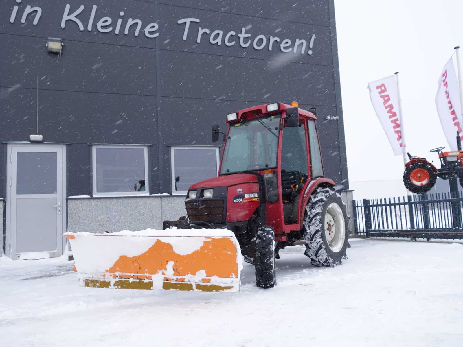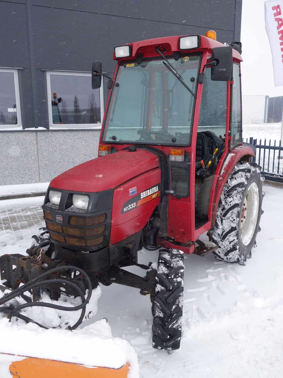 Shibaura ST333 4wd HST met hydraulisch verstelbare frontschuif en strooier!!