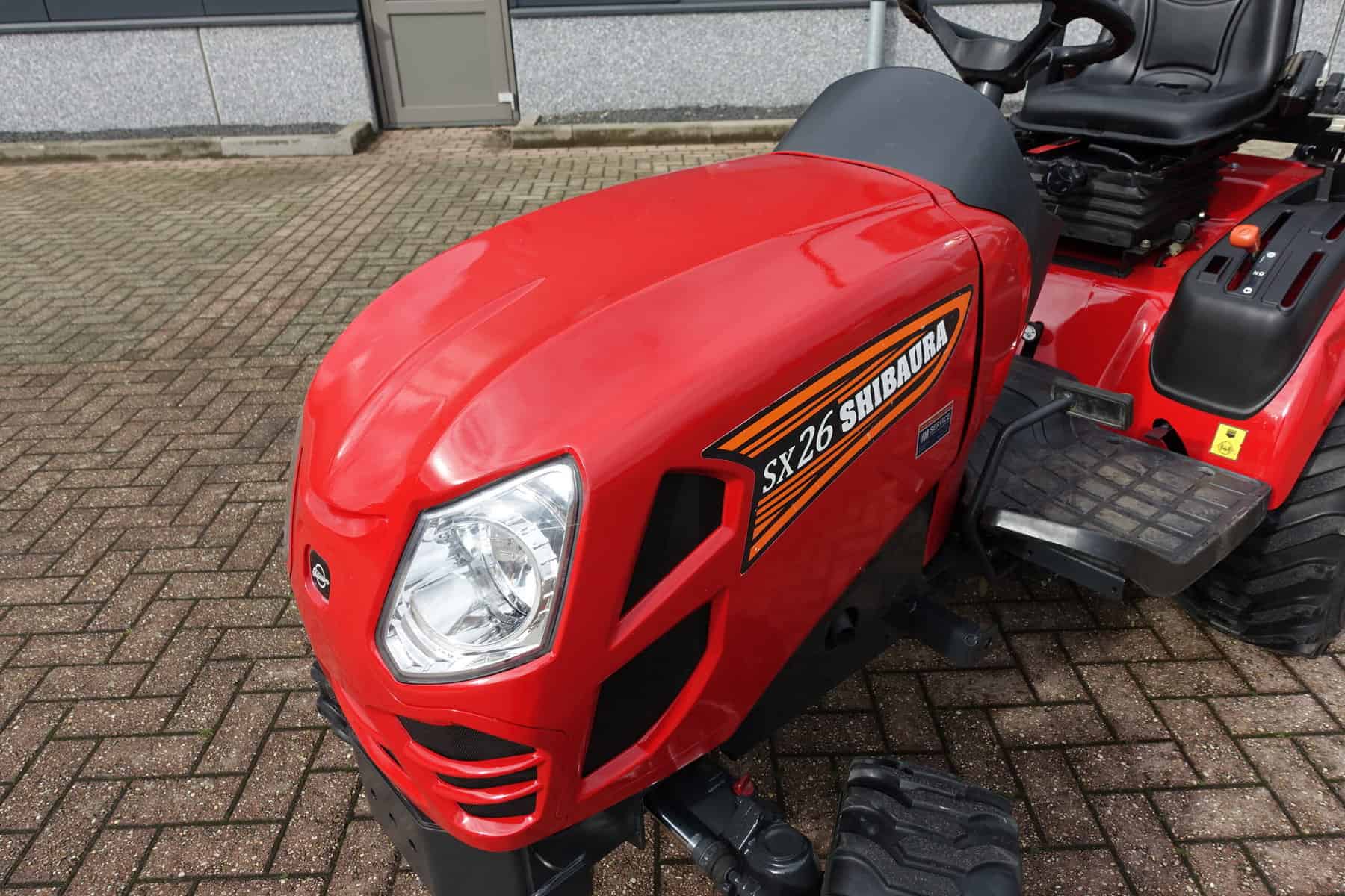 De SX-26 Het vertrouwde en zeer goede type compacttrekker van het Japanse topmerk Shibaura. Met een motorinhoud van maarliefst 1005cc met gemak aan de top in zijn klasse. Een motorvermogen van 27,6 Pk!! Deze kleine krachtpatser meet buitenwerks toch slechts 116cm waardoor de trekker uniek begint te worden. En dit is nog lang niet alles, de hele trekker is doordacht in techniek tot in detail! Even een opsomming van de uitrusting o.a; Stuurbekrachtiging, HST (automaat), Hoge en Lage gearing, Sper, Hef, Aftakas, Veiligheidsbeugel, Volledige wegverlichting, Aanhangwagenstekker, Ondertrekhaak, Brede industriebanden.