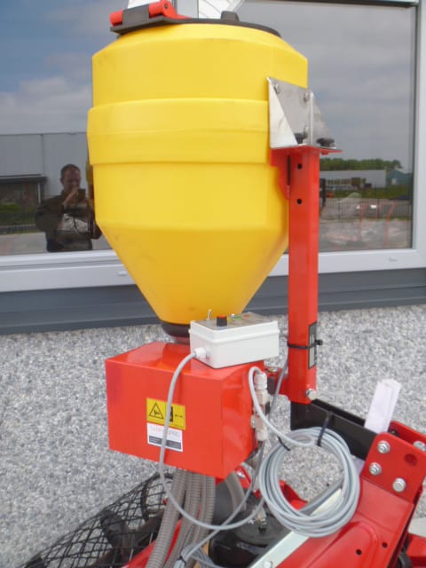 De zaaimachine heeft een breedwerpig zaaibeeld waardoor het zaad goed wordt verdeeld over de gehele werkbreedte. Electrisch aangedreven wat een zeer constante en gelijkmatige zaadafgifte garandeert. Roerder in de zaadbak zodat het zaad altijd goed wordt doorgevoerd.
