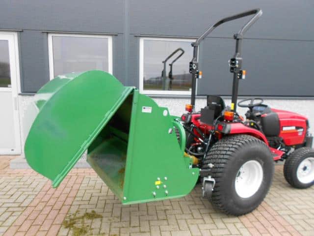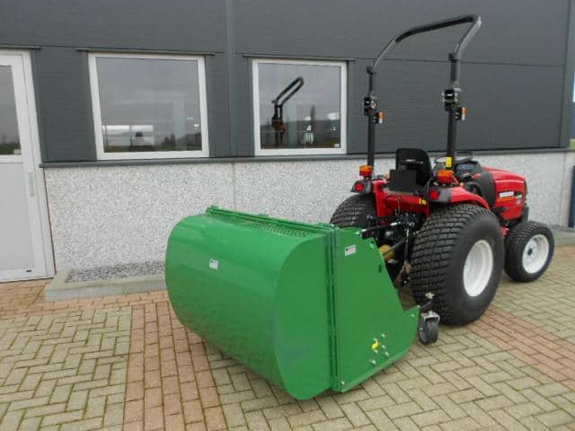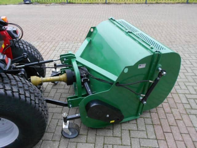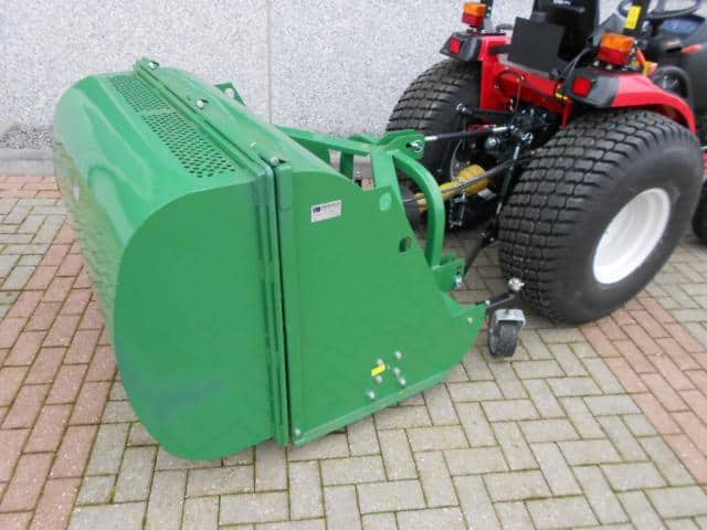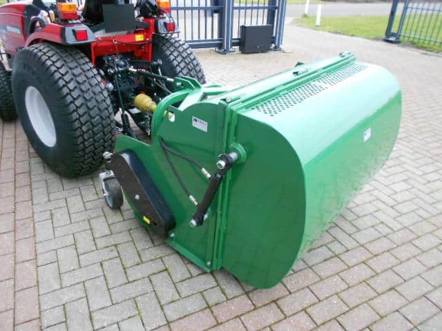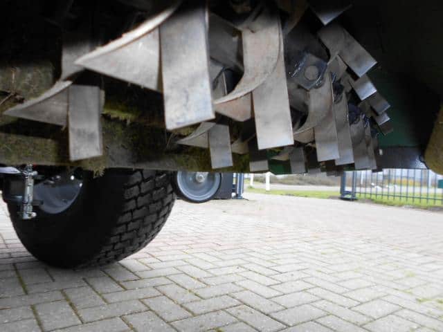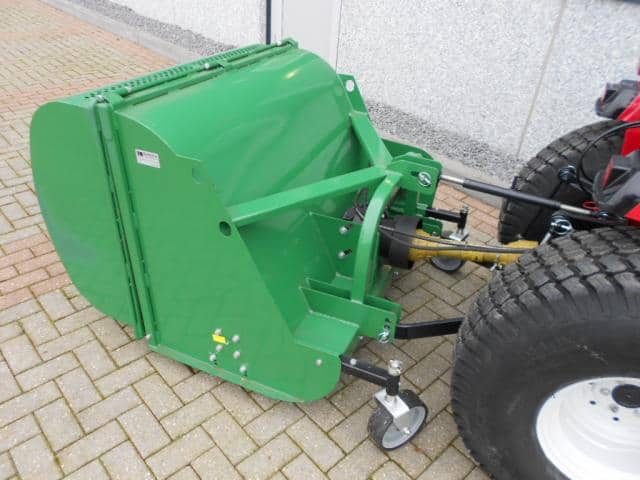DE oplossing voor al uw maai- / verticuteerwerkzaamheden. Ideale combinatiemachine voor het maaien en verticuteren van het gras! In een werkgang verticuteren en opvangen, dus al het mos en onkruid wordt ook direct afgevoerd. De hamerklepels zorgen voor de zuigende werking, de verticuteerklepels zorgen er voor dat er sleufjes van zo’n 2 cm in het gras gesneden worden waardoor onkruid en mos mee de bak in verdwijnt. Tevens een ideale manier om uw gras te beluchten. De aftakas aangedreven machine werkt volgens het principe van de klepelmaaier, omhuld door de grote opvangbak. Aan de voorzijde zijn de instelbare loopwielen gemonteerd welke zorgen voor een goede bodemvolging. Achter de klepelas is de looprol gepositioneerd, deze drukt het gras mooi aan en zorgt er voor dat er geen sporen worden achtergelaten. Hydraulische bediening van de achterklep. (minimaal 1 hydrauliekaansluiting nodig). Toepasbaar achter tractoren vanaf zo’n 20 Pk vaak in combinatie met een paar frontgewichten. Nieuwe machine welke we even uitgetest hebben in het veld. Compleet met aftakas.