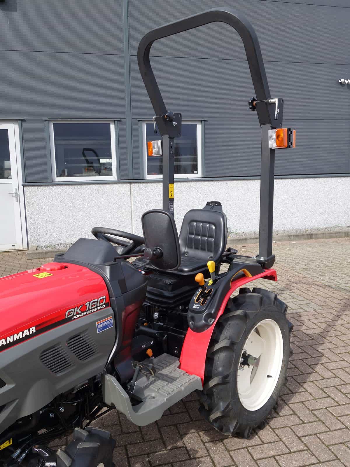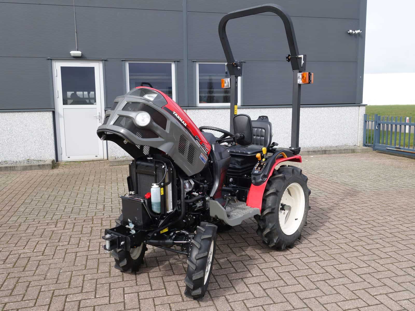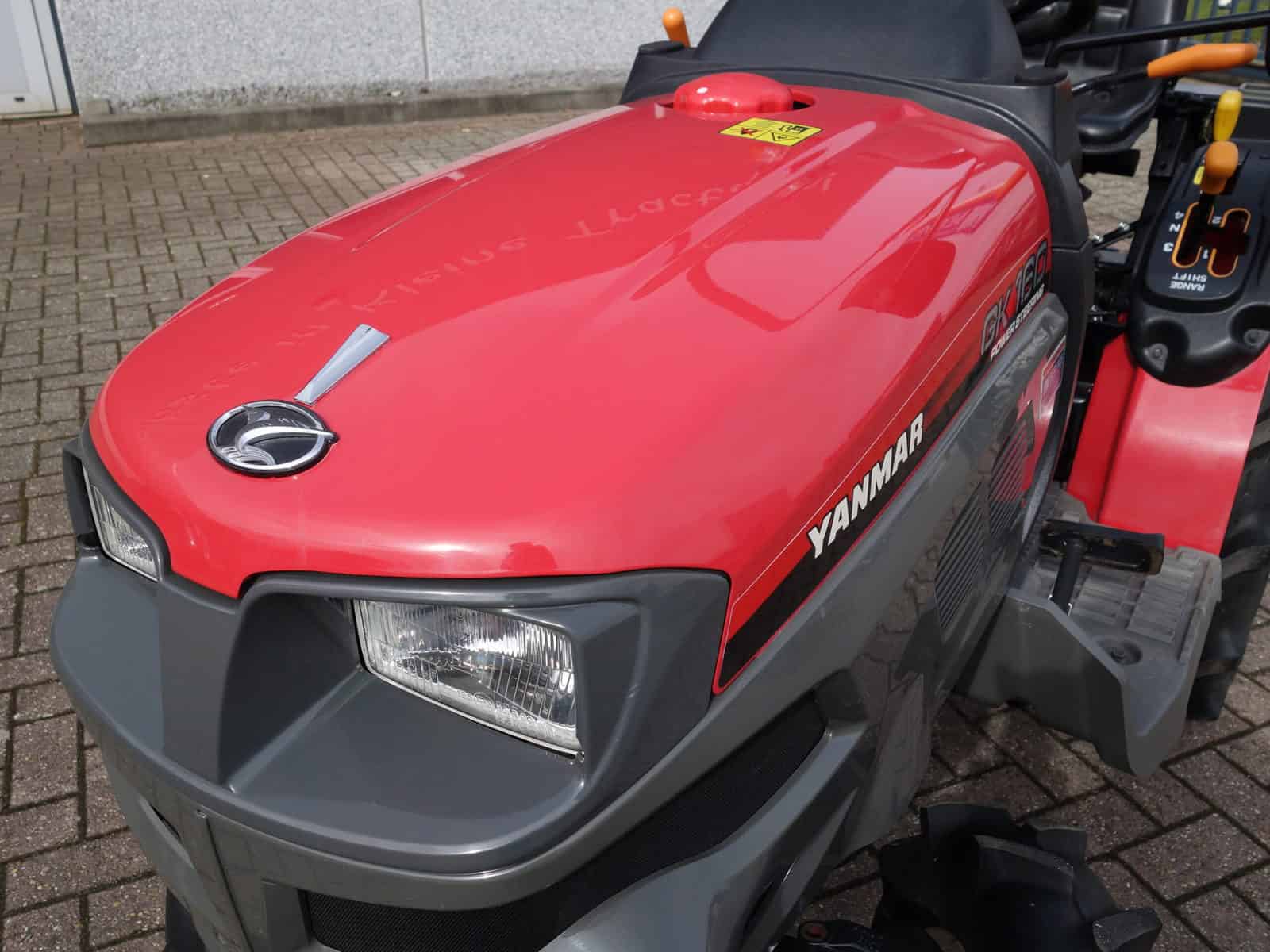 De nieuwste generatie proffesionele YANMAR GK-160 tractoren blinken uit in design, compactheid compleetheid en overzichtelijkheid! Om te beginnen het DESIGN, oordeelt u zelf over uiterlijk, wij zeggen hier unaniem; Smaakvol ontworpen met een hoog afwerkingsniveau, goed gedaan YANMAR!! Het meest elegant zijn wel de schijnwerpers aan de voorzijde in de frontgrill, stoer en zeer functioneel. Dan de COMPACTHEID, De ontwerpers hebben naast het design ook grote aandacht geschonken aan de compactheid en ergonomische plaatsing van de diverse bedieninghandles. Doorontwikkeling levert dit technisch hoogstaande eindproduct, en ook op dit punt; Kijk en vergelijk!! Ten derde de COMPLEETHEID van trekker is zeer groot doordat de trekker is uitgevoerd met de volgende opties; Fronttrekhaak, Stuurbekrachtiging, Omkeerschakeling onder het stuur, Zijschakeling, Hoge en Lage gearing. In- en Uitschakelbare 4wd, Hef, Aftakas, Topstang, Ondertrekhaak, Opklapbare Veiligheidsbeugel, Wegverlichting, Spiegel, Aanhangwagenverlichtingsstekker, Grote wielen, enz. enz. Tot slot de OVERZICHTELIJKHEID dit is eigenlijk de samenvatting van hetgeen hierboven omschreven, het eindproduct, de YANMAR GK-160 POWER STEERING. Nog even wat technische details op een rijtje; Krachtige 16 Pk 3 cilinder dieselmotor, Direct ingespoten (starten zonder te gloeien). Hefvermogen achterzijde 550 Kg.