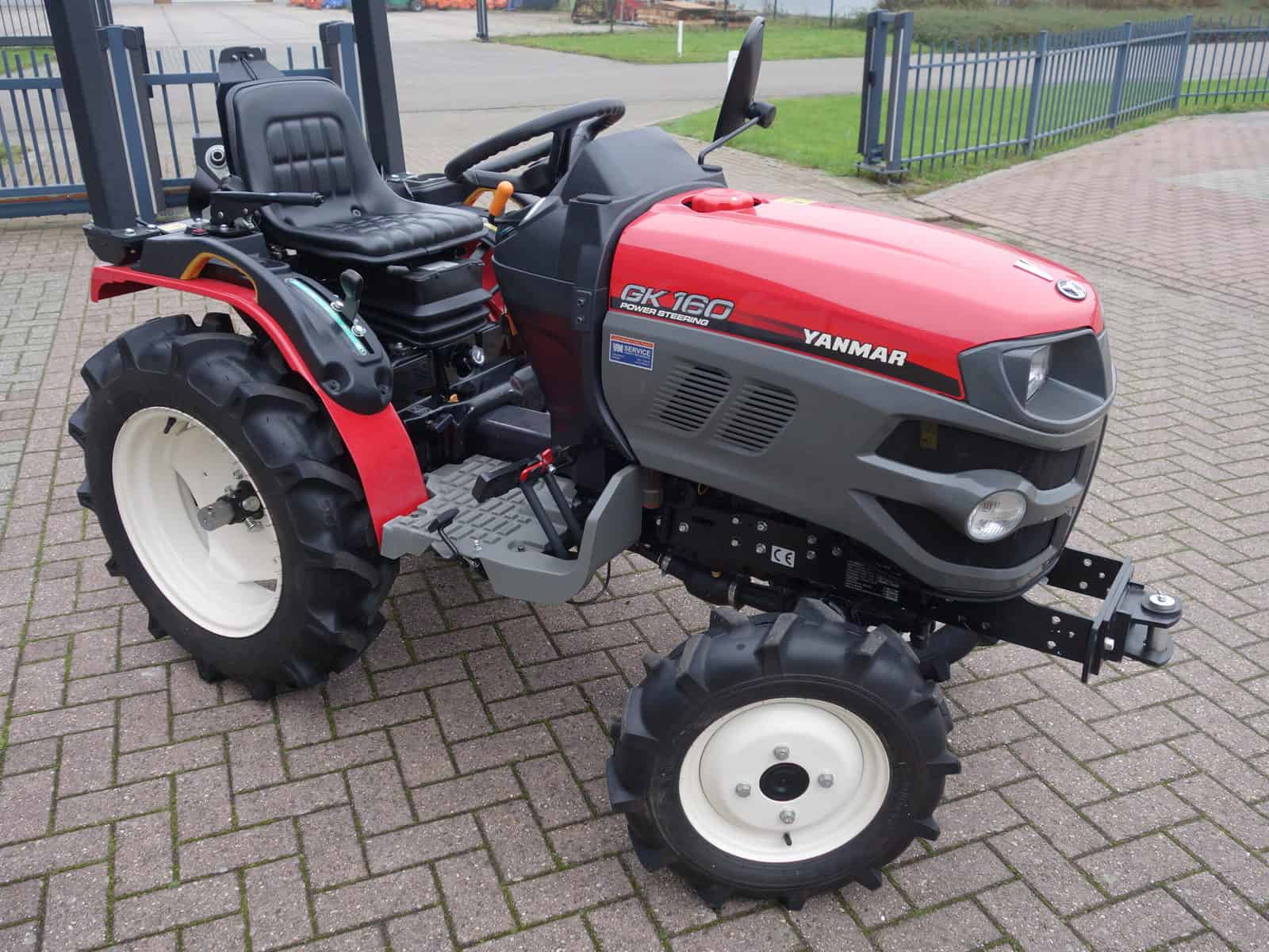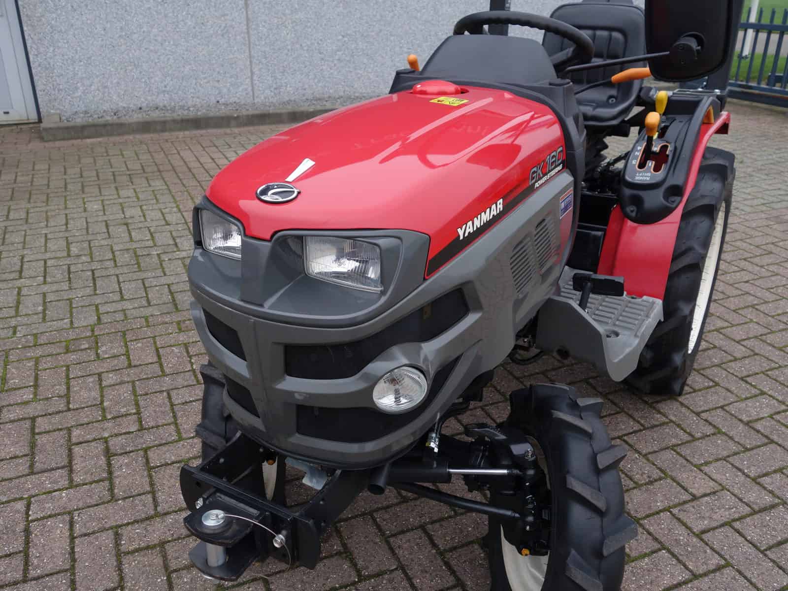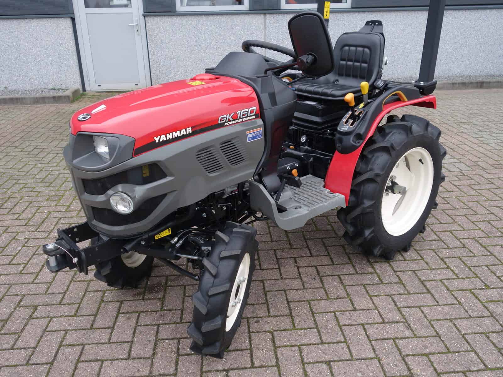 De nieuwste generatie proffesionele YANMAR GK-160 tractoren blinken uit in design, compactheid compleetheid en overzichtelijkheid! Om te beginnen het DESIGN, oordeelt u zelf over uiterlijk, wij zeggen hier unaniem; Smaakvol ontworpen met een hoog afwerkingsniveau, goed gedaan YANMAR!! Het meest elegant zijn wel de schijnwerpers aan de voorzijde in de frontgrill, stoer en zeer functioneel. Dan de COMPACTHEID, De ontwerpers hebben naast het design ook grote aandacht geschonken aan de compactheid en ergonomische plaatsing van de diverse bedieninghandles. Doorontwikkeling levert dit technisch hoogstaande eindproduct, en ook op dit punt; Kijk en vergelijk!! Ten derde de COMPLEETHEID van trekker is zeer groot doordat de trekker is uitgevoerd met de volgende opties; Fronttrekhaak, Stuurbekrachtiging, Omkeerschakeling onder het stuur, Zijschakeling, Hoge en Lage gearing. In- en Uitschakelbare 4wd, Hef, Aftakas, Topstang, Ondertrekhaak, Opklapbare Veiligheidsbeugel, Wegverlichting, Spiegel, Aanhangwagenverlichtingsstekker, Grote wielen, enz. enz. Tot slot de OVERZICHTELIJKHEID dit is eigenlijk de samenvatting van hetgeen hierboven omschreven, het eindproduct, de YANMAR GK-160 POWER STEERING. Nog even wat technische details op een rijtje; Krachtige 16 Pk 3 cilinder dieselmotor, Direct ingespoten (starten zonder te gloeien). Hefvermogen achterzijde 550 Kg.