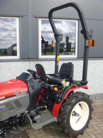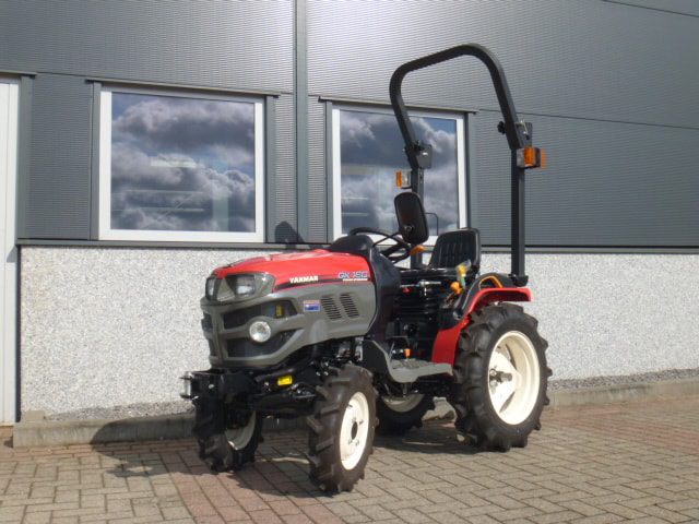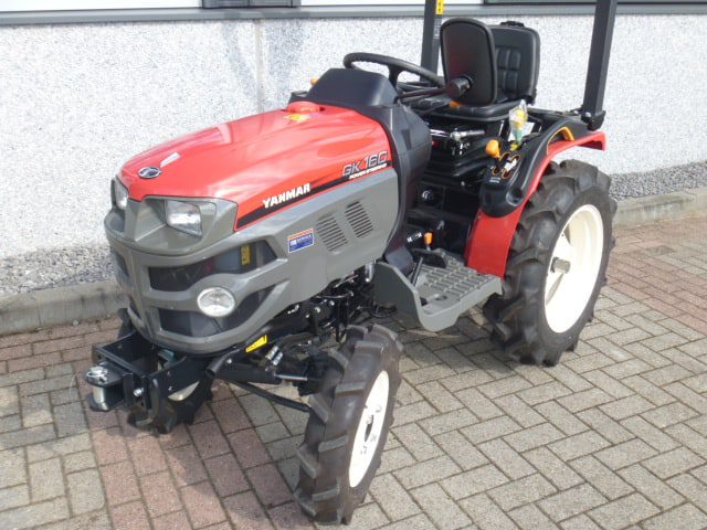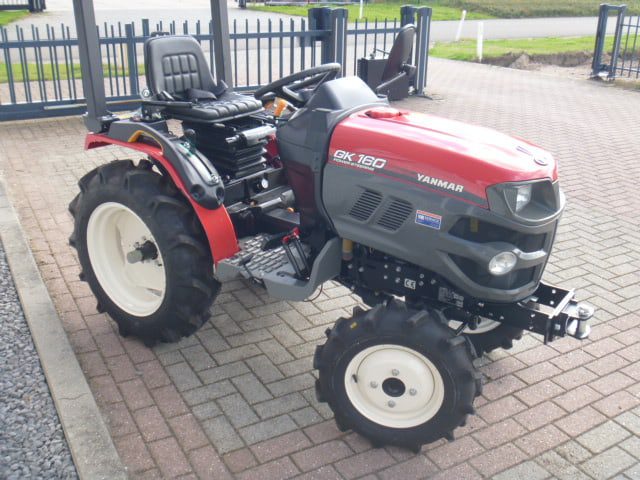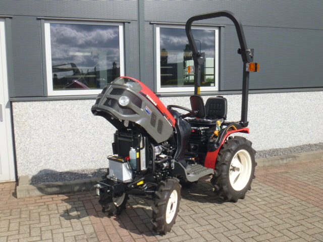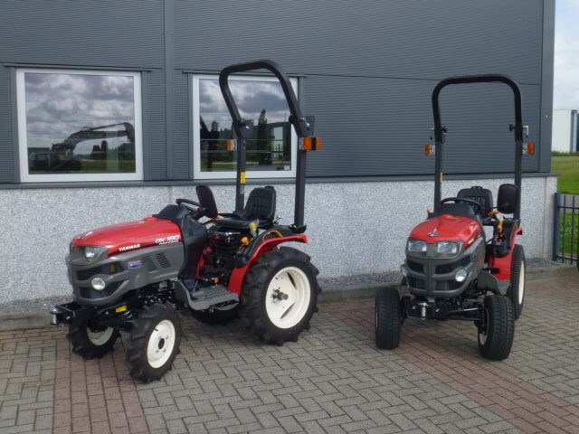 Nieuw en Bijzonder; Als handelsonderneming in minitrekkers proberen we u een zo breed en compleet mogelijk aanbod te bieden. Met genoegen presenteren we de meest recente aanvulling op ons assortiment; YANMAR proffesional compact tractors! De nieuwste generatie proffesionele YANMAR GK-160 tractoren blinken uit in design, compactheid compleetheid en overzichtelijkheid! Om te beginnen het DESIGN, oordeelt u zelf over uiterlijk, wij zeggen hier unaniem; Smaakvol ontworpen met een hoog afwerkingsniveau, goed gedaan YANMAR!! Het meest elegant zijn wel de schijnwerpers aan de voorzijde in de frontgrill, stoer en zeer functioneel. Dan de COMPACTHEID, De ontwerpers hebben naast het design ook grote aandacht geschonken aan de compactheid en ergonomische plaatsing van de diverse bedieninghandles. Doorontwikkeling levert dit technisch hoogstaande eindproduct, en ook op dit punt; Kijk en vergelijk!! Ten derde de COMPLEETHEID van trekker is zeer groot doordat de trekker is uitgevoerd met de volgende opties; Fronttrekhaak, Stuurbekrachtiging, Omkeerschakeling onder het stuur, Zijschakeling, Hoge en Lage gearing. In- en Uitschakelbare 4wd, Hef, Aftakas, Topstang, Ondertrekhaak, Opklapbare Veiligheidsbeugel, Wegverlichting, Spiegel, Aanhangwagenverlichtingsstekker, Grote wielen, enz. enz. Tot slot de OVERZICHTELIJKHEID dit is eigenlijk de samenvatting van hetgeen hierboven omschreven, het eindproduct, de YANMAR GK-160 POWER STEERING. Nog even wat technische details op een rijtje; Krachtige 16 Pk 3 cilinder dieselmotor, Direct ingespoten (starten zonder te gloeien). Hefvermogen achterzijde 550 Kg. Als laatste willen we u nog de ACTIEPRIJS van slechts € 8.450,– ex btw voor deze nieuwe compacttractoren benoemen, banden naar keuze akkerwielen of gazonbanden. Zie ook de foto’s en videobeelden. Tractoren zijn van bouwjaar 2016 en worden geleverd met de volledige periode fabrieksgarantie.